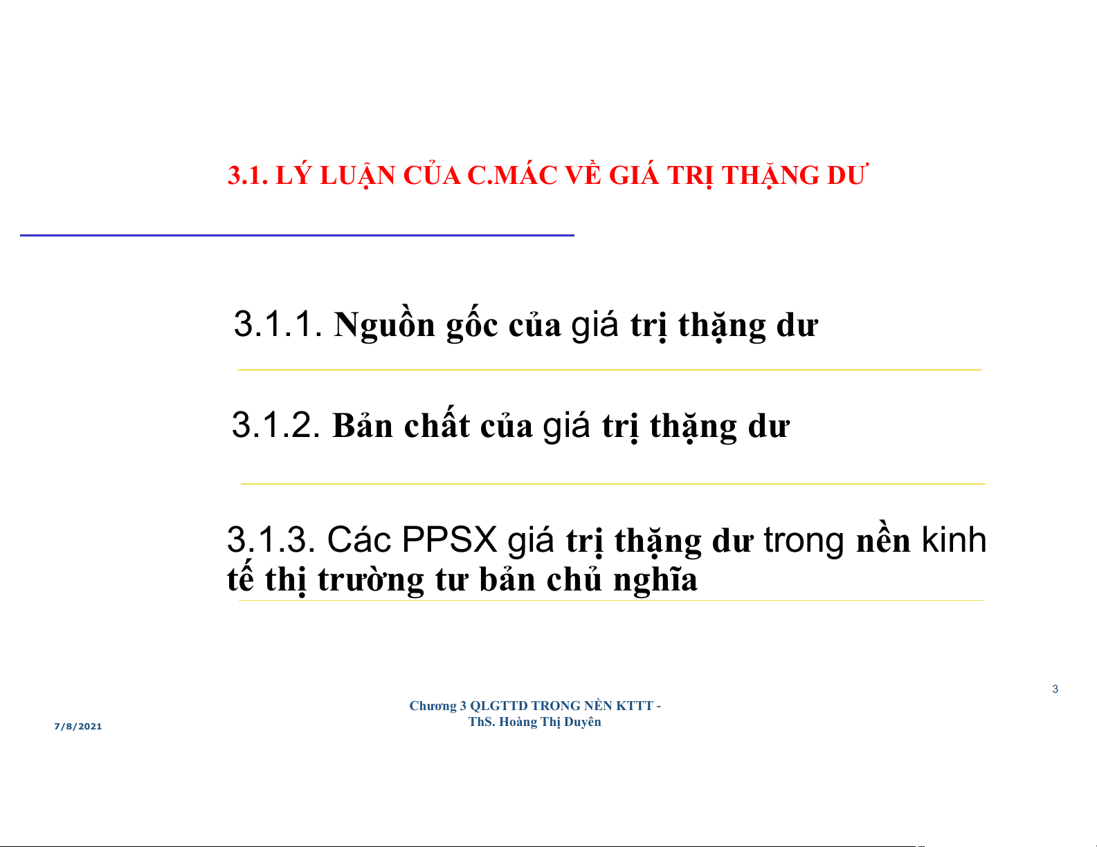 3.1. LÝ LUẬN CỦA C.MÁC VỀ GIÁ TRỊ THẶNG DƢ