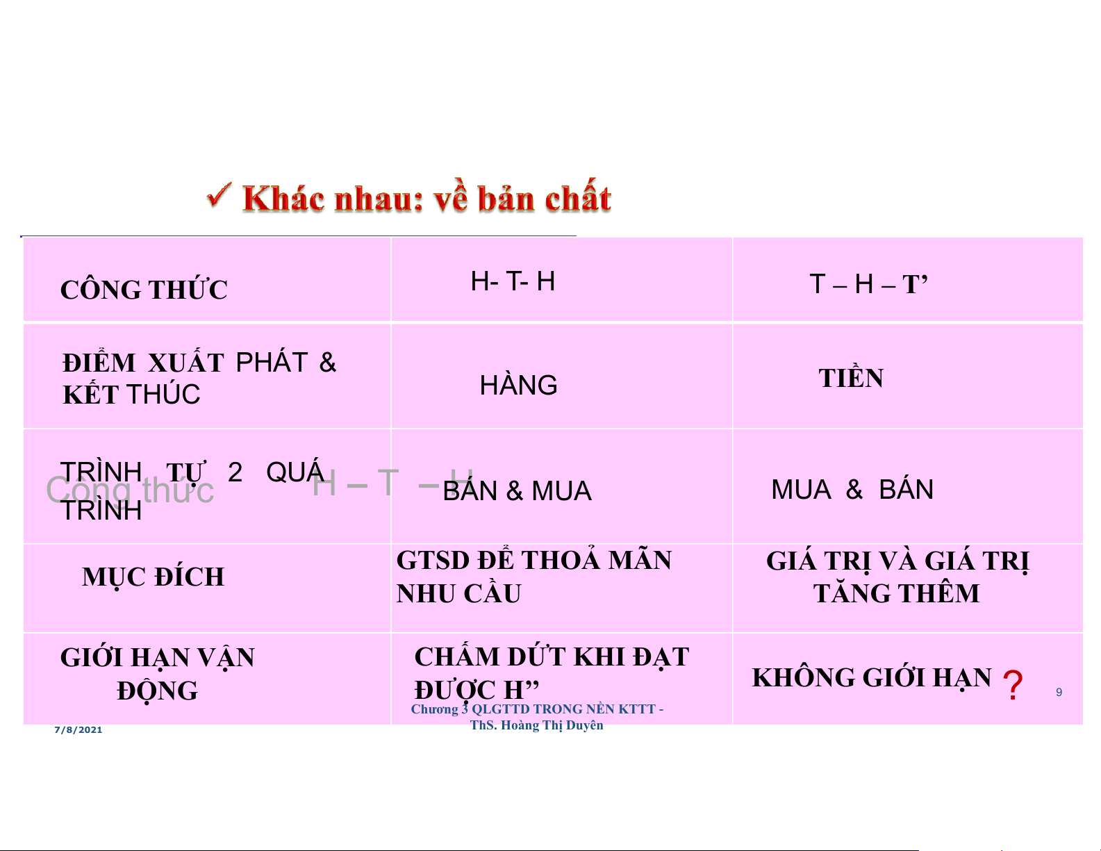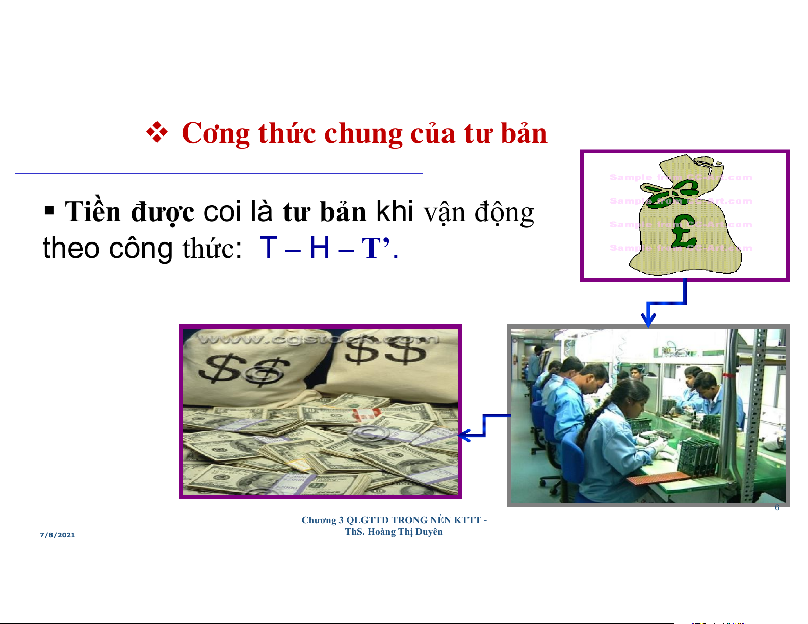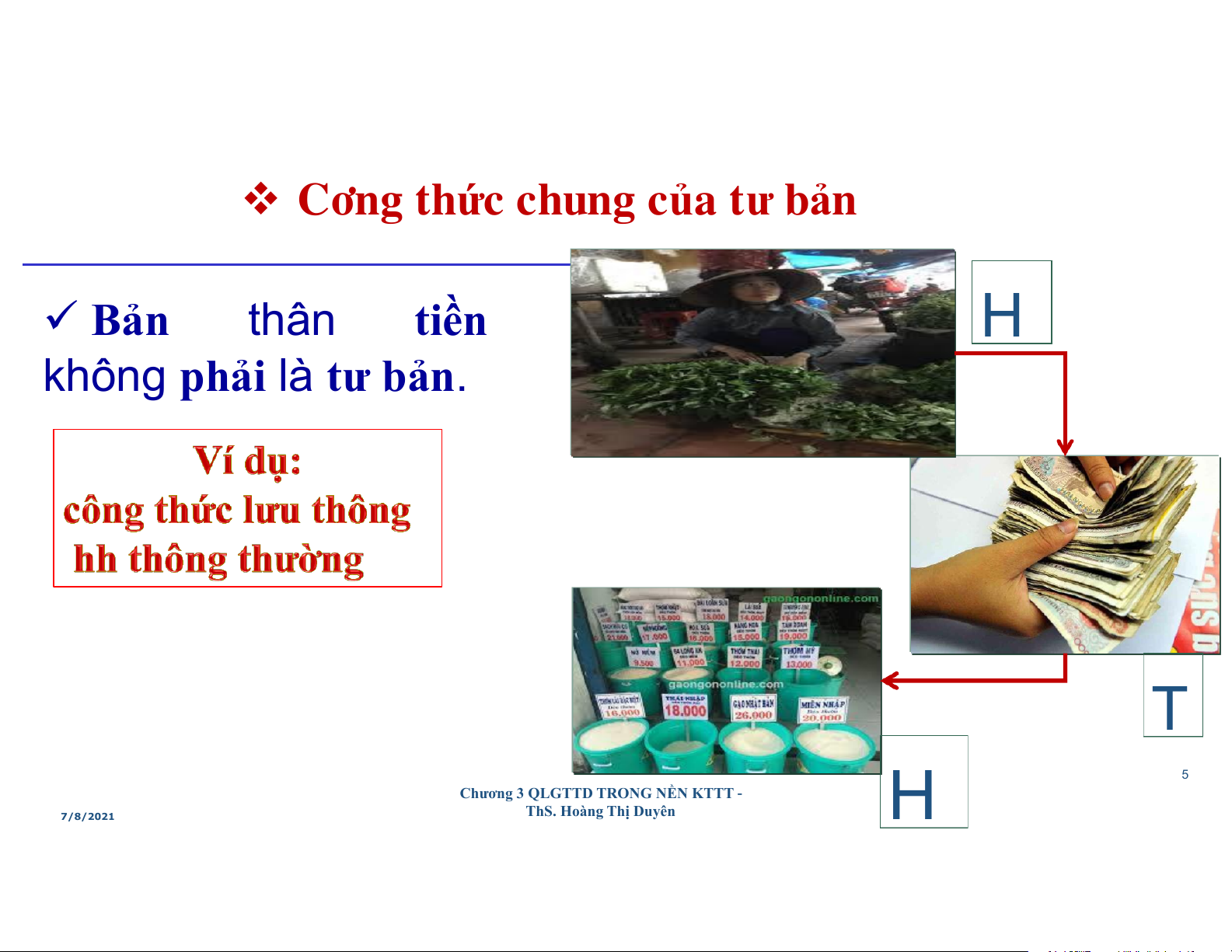 Công thức chung của tƣ b n ả Bản thân tiền H không phải l à tƣ . bản T 5