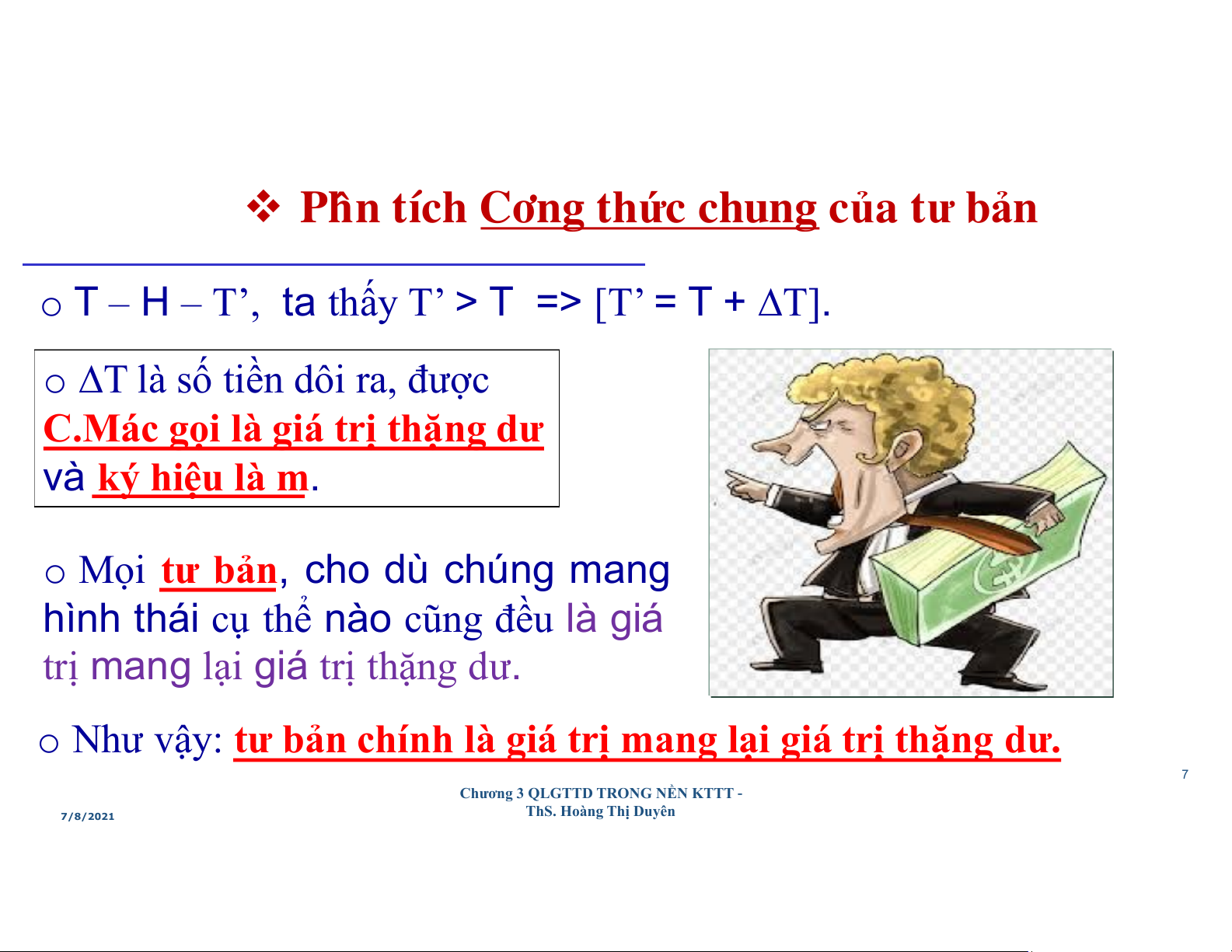 o Như vậy: tƣ bản chính là giá trị mang lại giá trị thặng dƣ. 7
