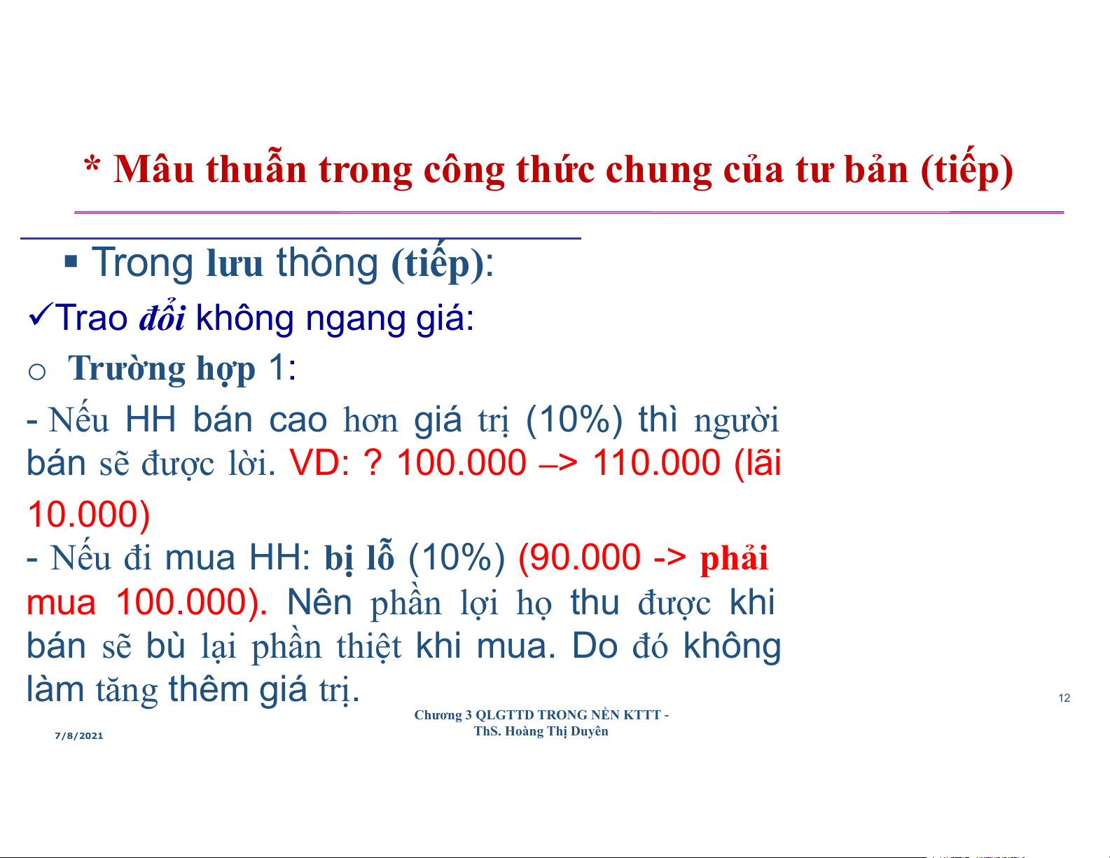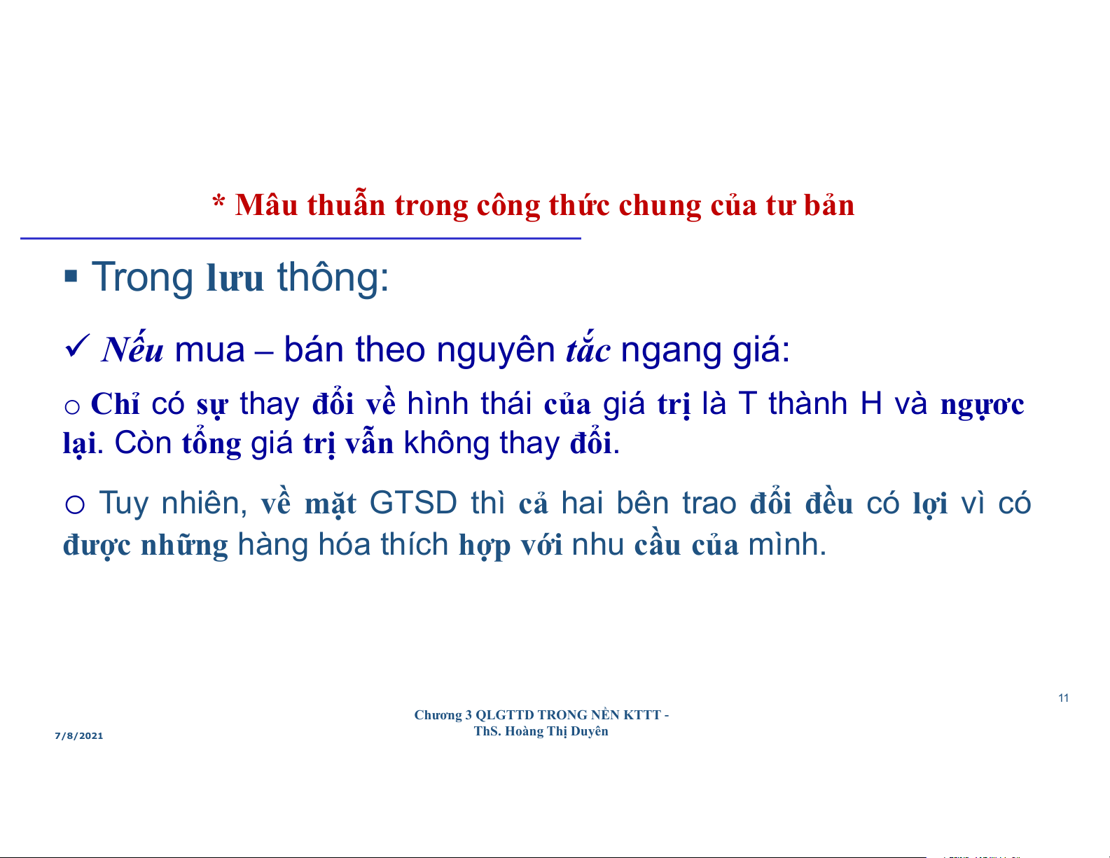 * Mâu thuẫn trong công thức chung của tƣ bản Trong lƣu thông: