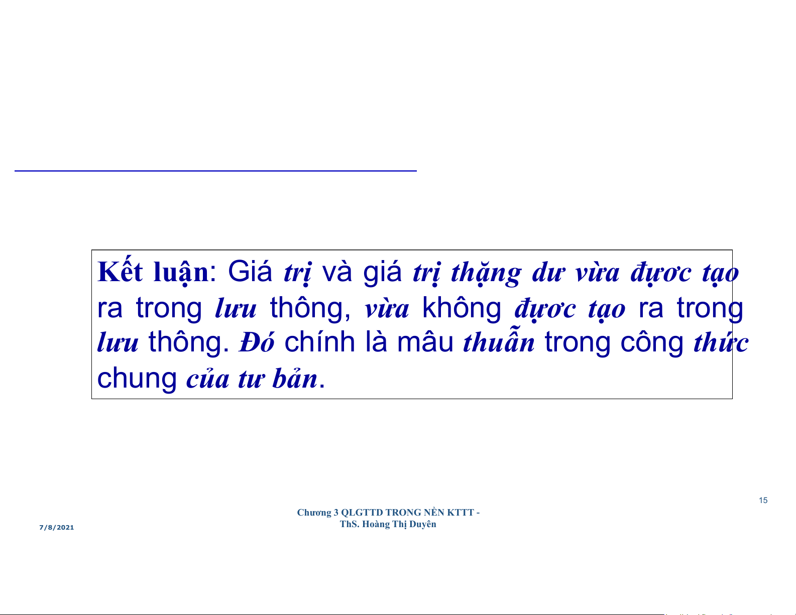 Kết luận: Giá trị và giá trị thặng dư vừa đựơc tạo