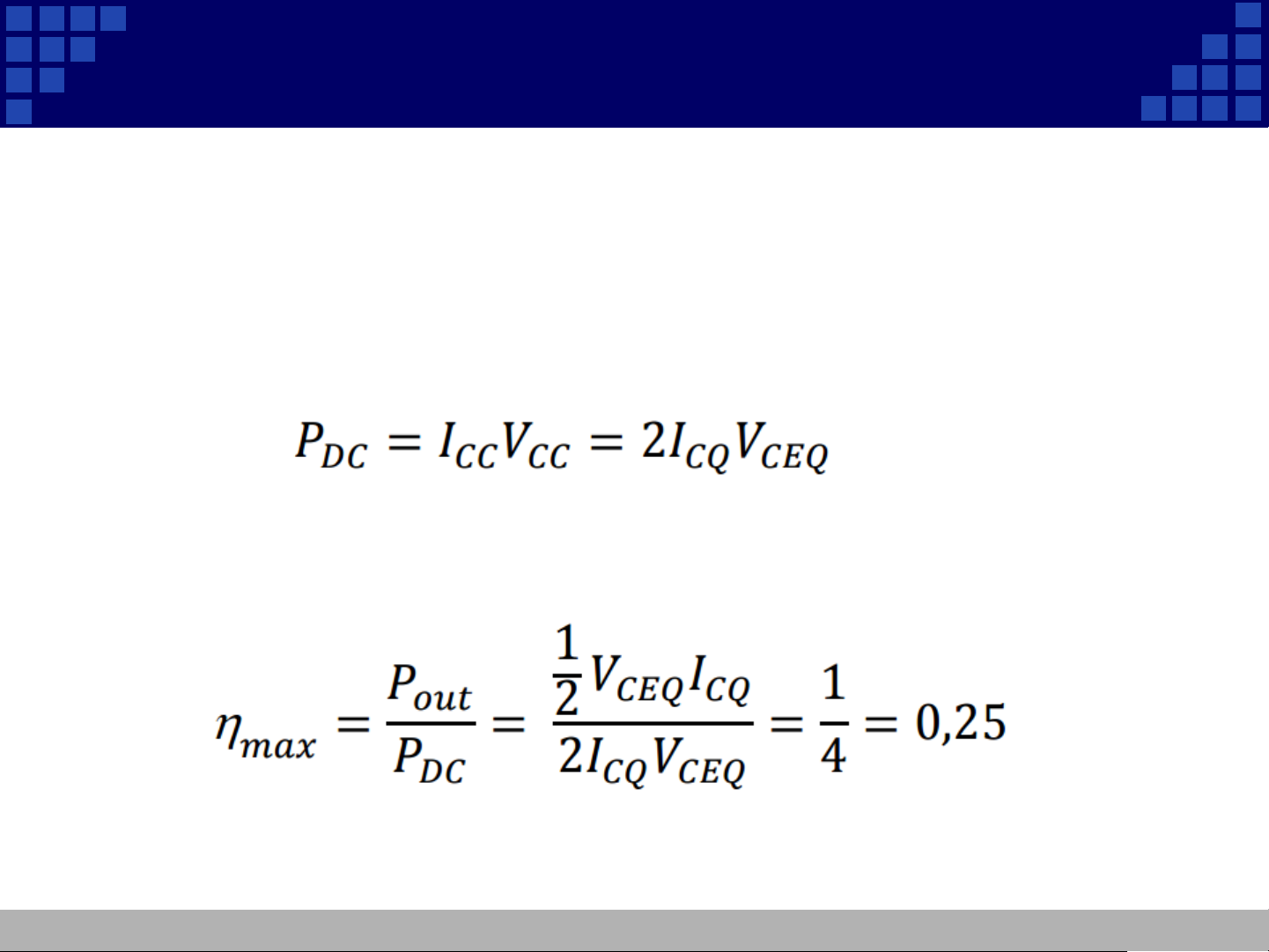 Công suất nguồn cung cấp: Điểm làm việc VCEQ chọn ở giữa đặc tuyến nên VCEQ = VCC/2 Hiệu suất của mạch: