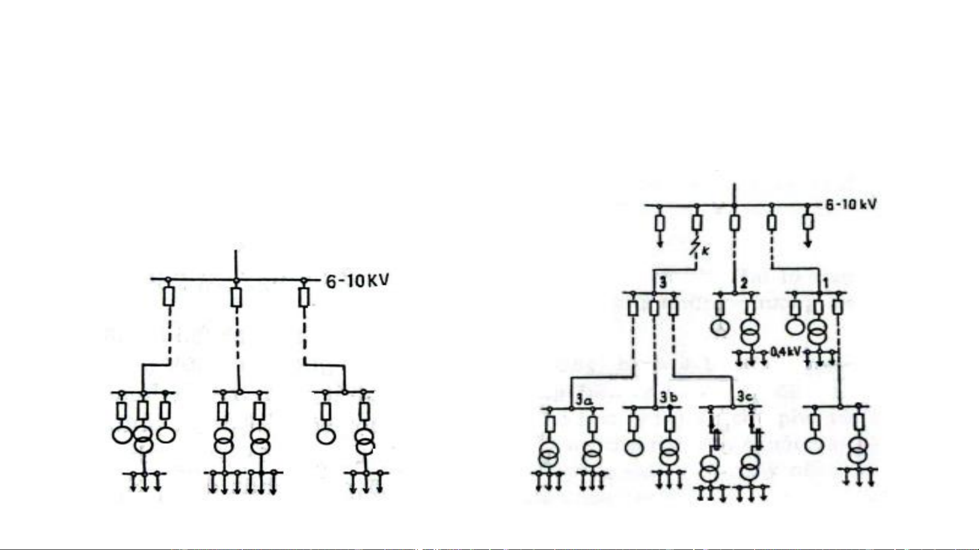 • Sơ đồ hình tia: Mỗi hộ tiêu thụ được cung cấp bằng 1 lộ riêng • Sơ đồ phân nhánh: b, a, • Sơ đồ hỗn hợp