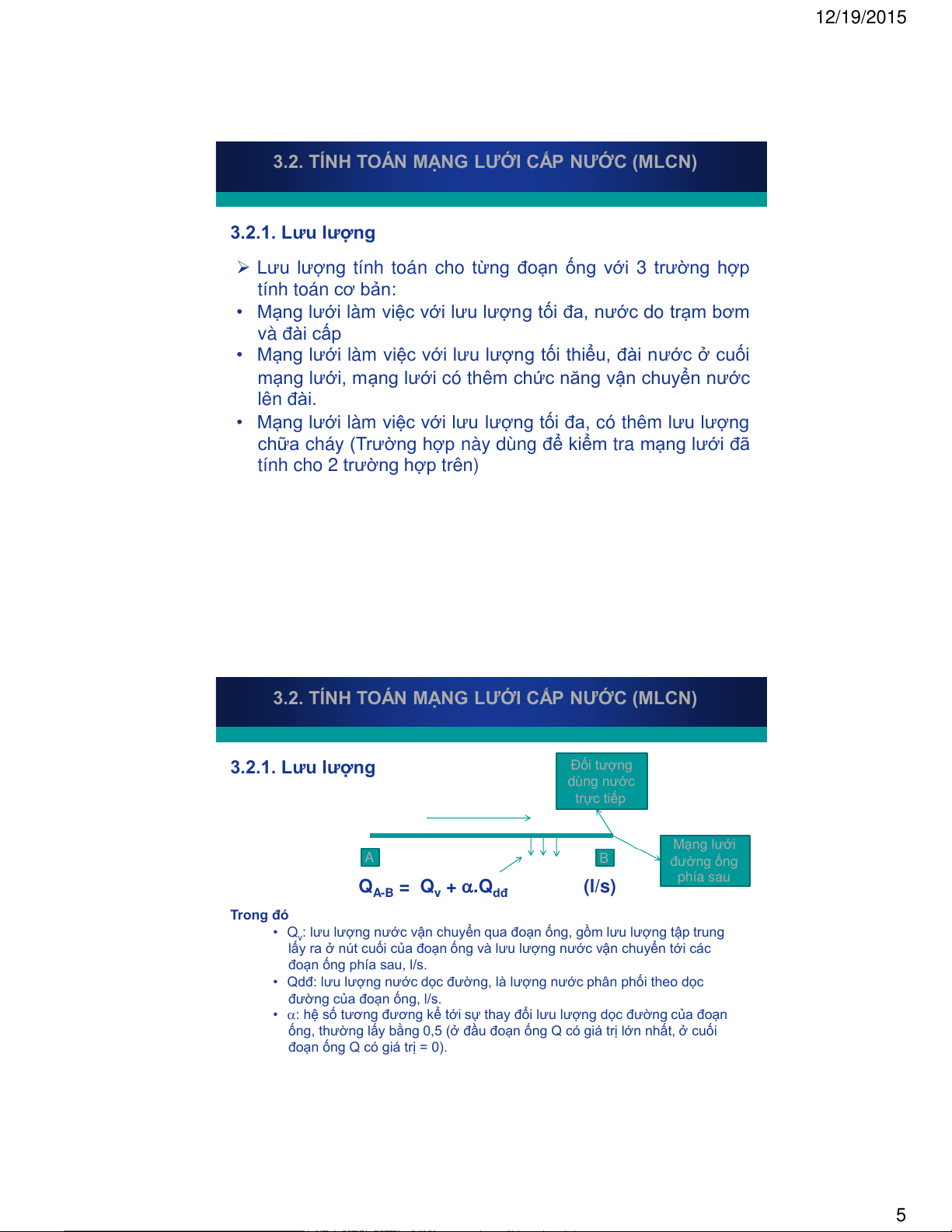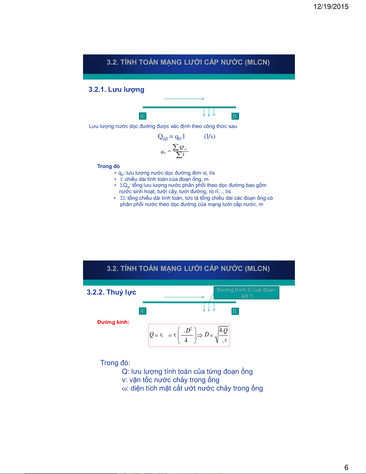 • Qv: lưu lượng nước vận chuyển qua đoạn ống, gồm lưu lượng tập trung