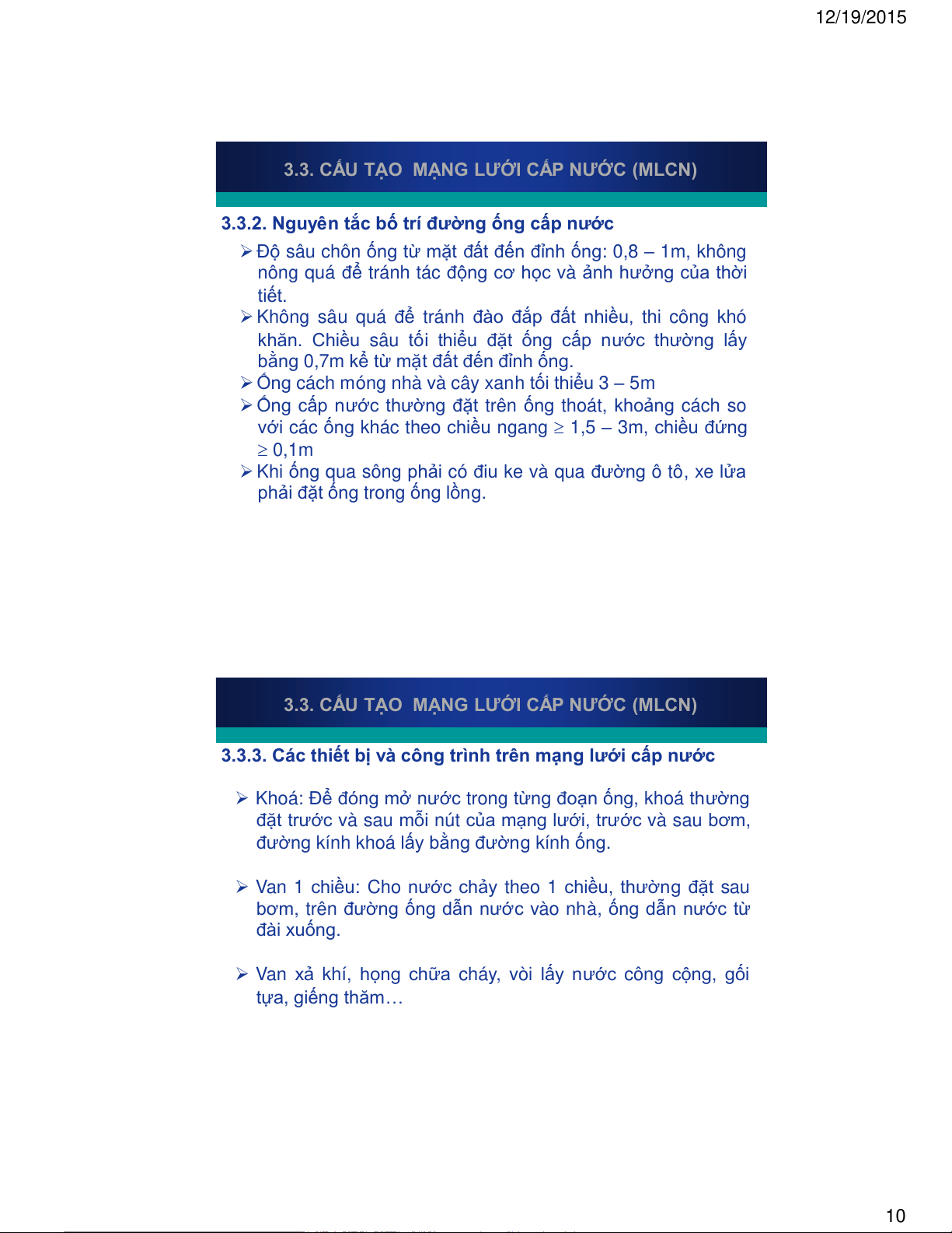 3.3.3. Các thiết bị và công trình trên mạng lưới cấp nước 1 12/19/2015