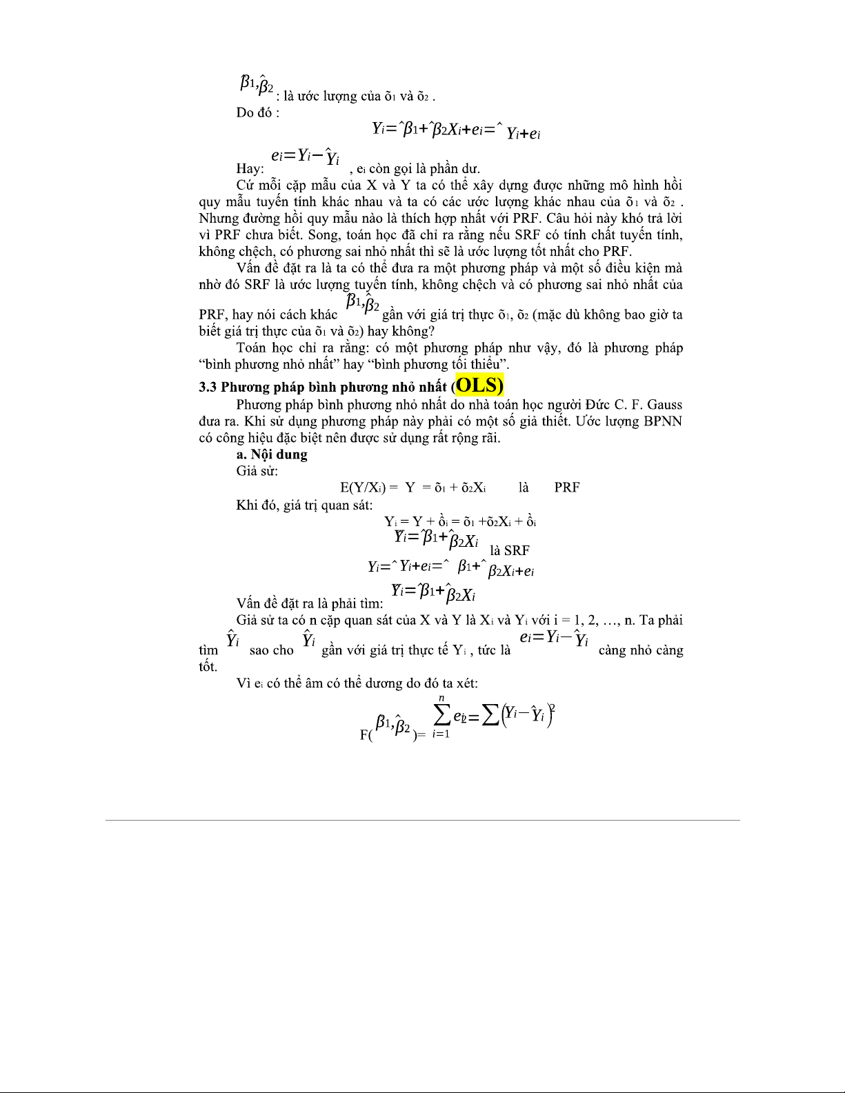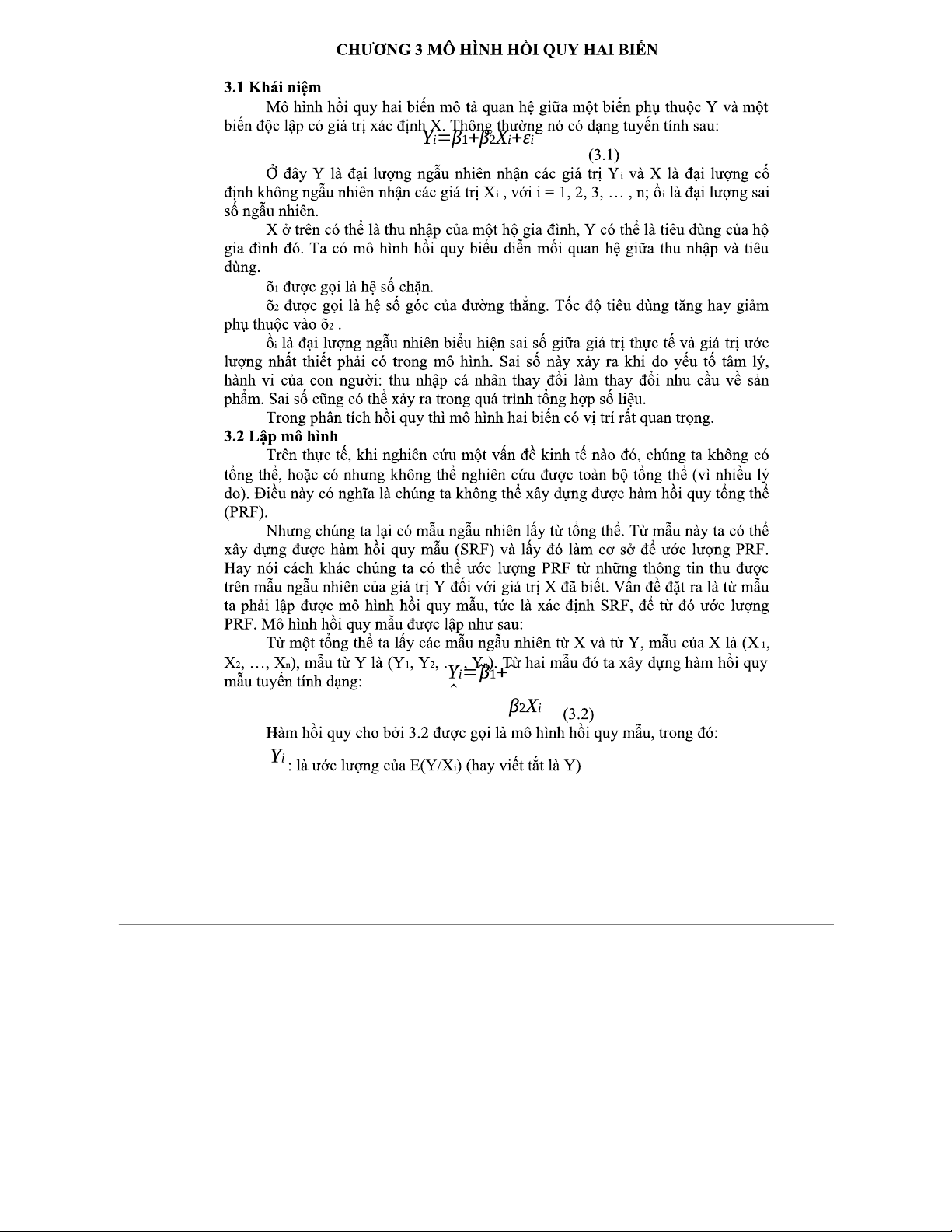 CHƯƠNG 3: MÔ HÌNH HỒI QUY HAI BIẾN VÀ CÁC PHƯƠNG PHÁP ĐÁNH GIÁ