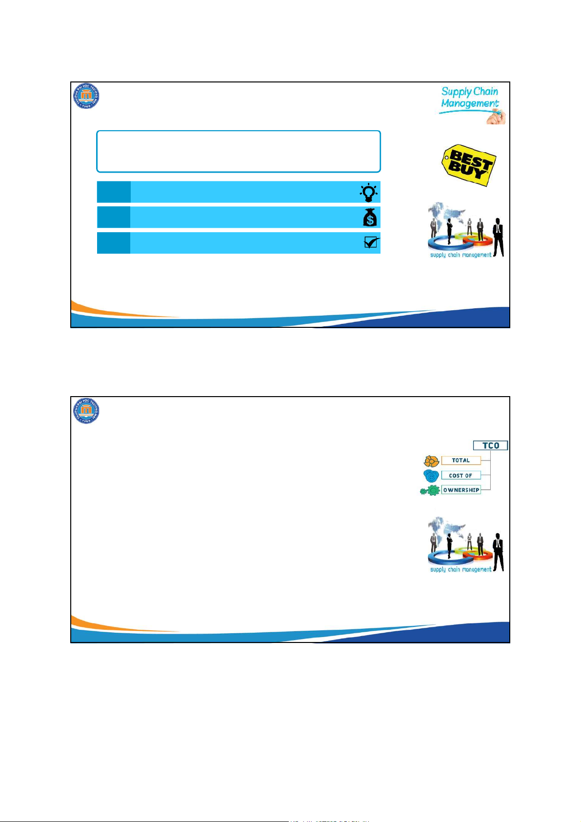 Chiến thuật Tổng chi phí sở hữu 1980-1990 thấp nhất (Procurement) (Tactical) Mua sắm 1950-1980 Tác nghiệp Giá thấp nhất (Purchasing) (Operational) cho 1 đơn vị sp 3. 3 1 . . 1 1 . 1 K h K á h i á in i n ệ i m ệ , m ,v a v i a it r t ò r ò v à v à q . q đ . i đ ể i m ể m t i t ế i p ế p c ậ c n ậ 10