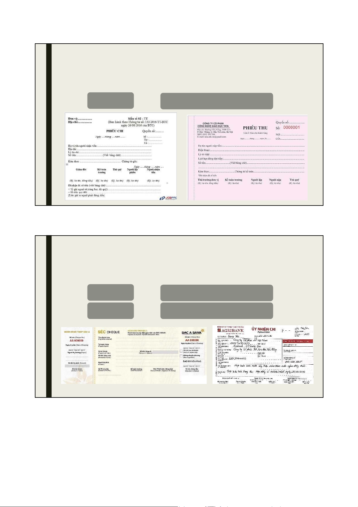 m thu, uỷ nhiệm chi, giấy báo Nợ/Có,… Chứng từ tiền mặt