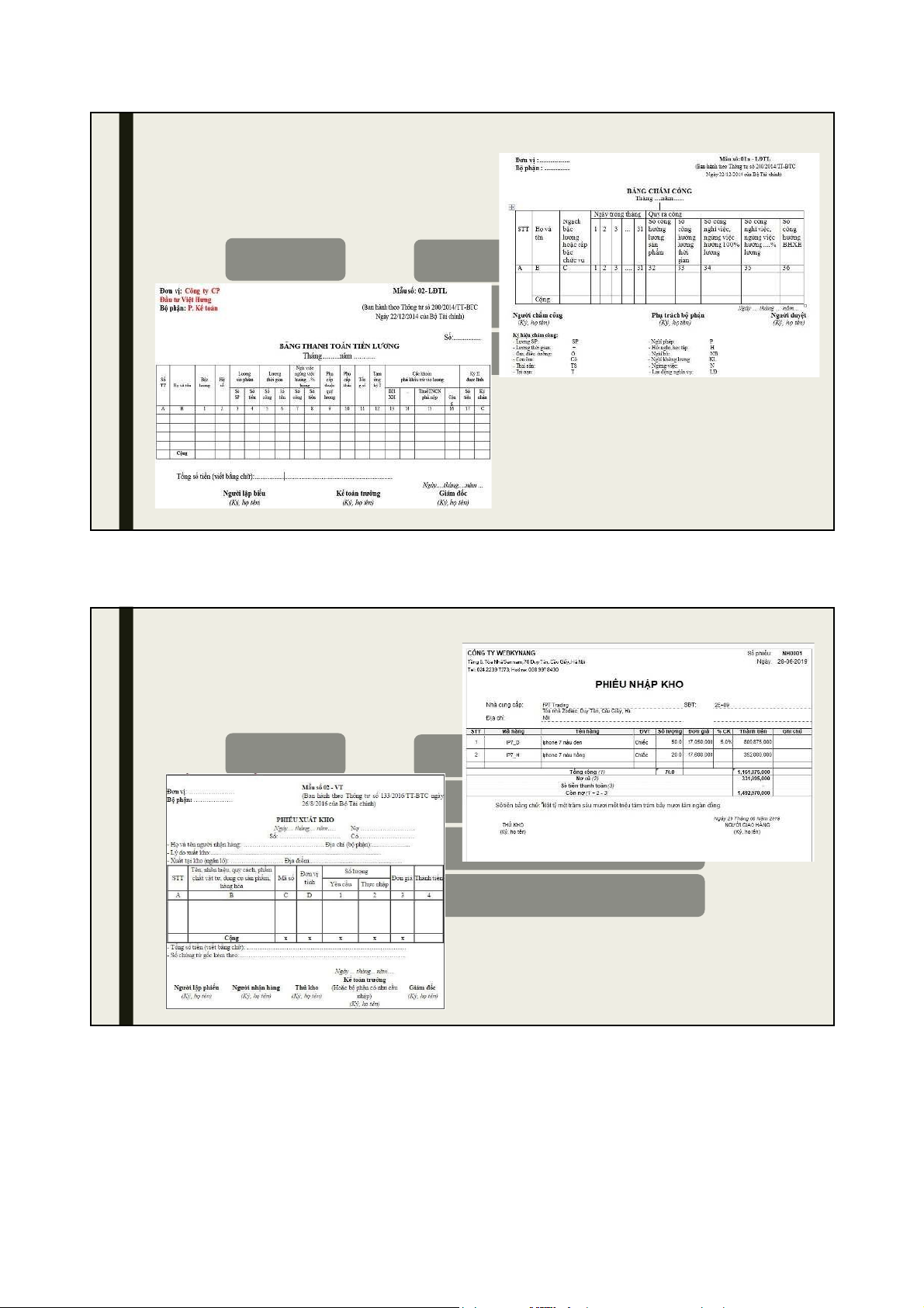 công, bảng thanh toán lương, … ngân hàng Chứng từ lao P đ h ộ iếu ng nhập - kh o, phiếu xuất kho, … và tiền lương Chứng từ hàn Hoá g tồ đ n ơn G - T