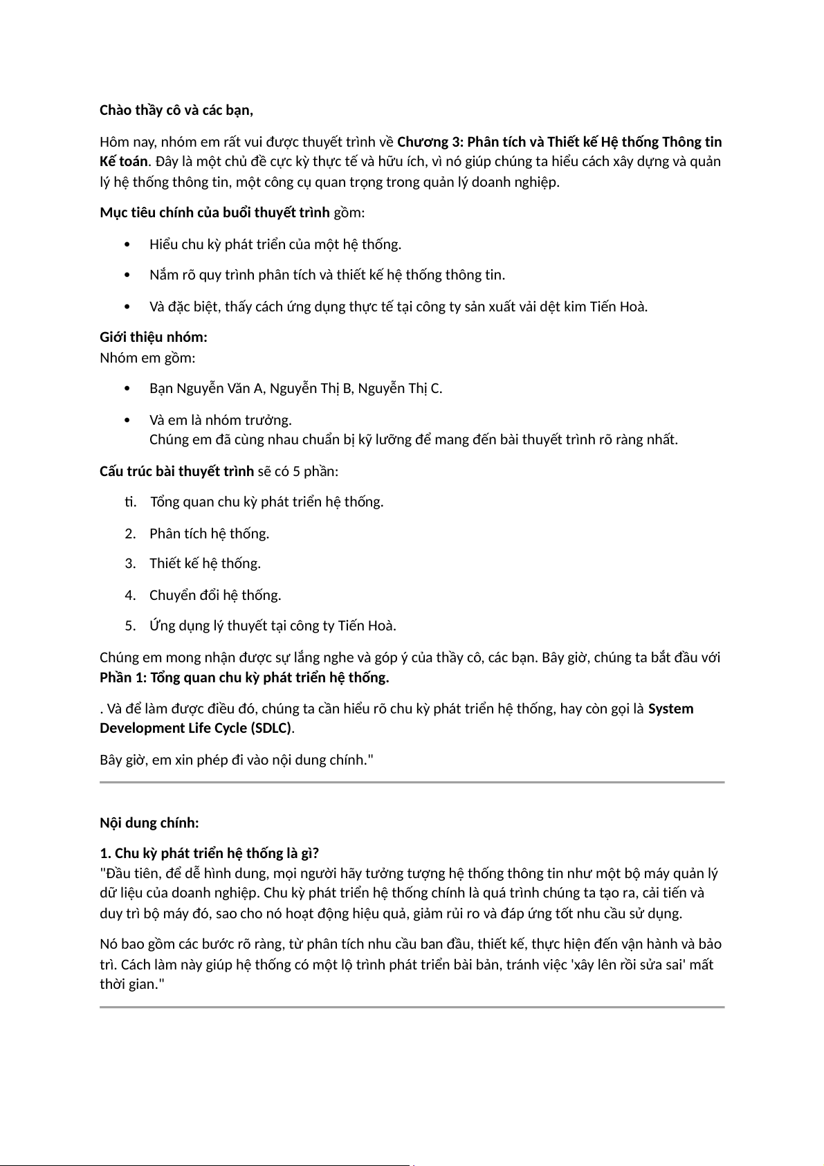 Bây giờ, em xin phép đi vào nội dung chính." Nội dung chính: