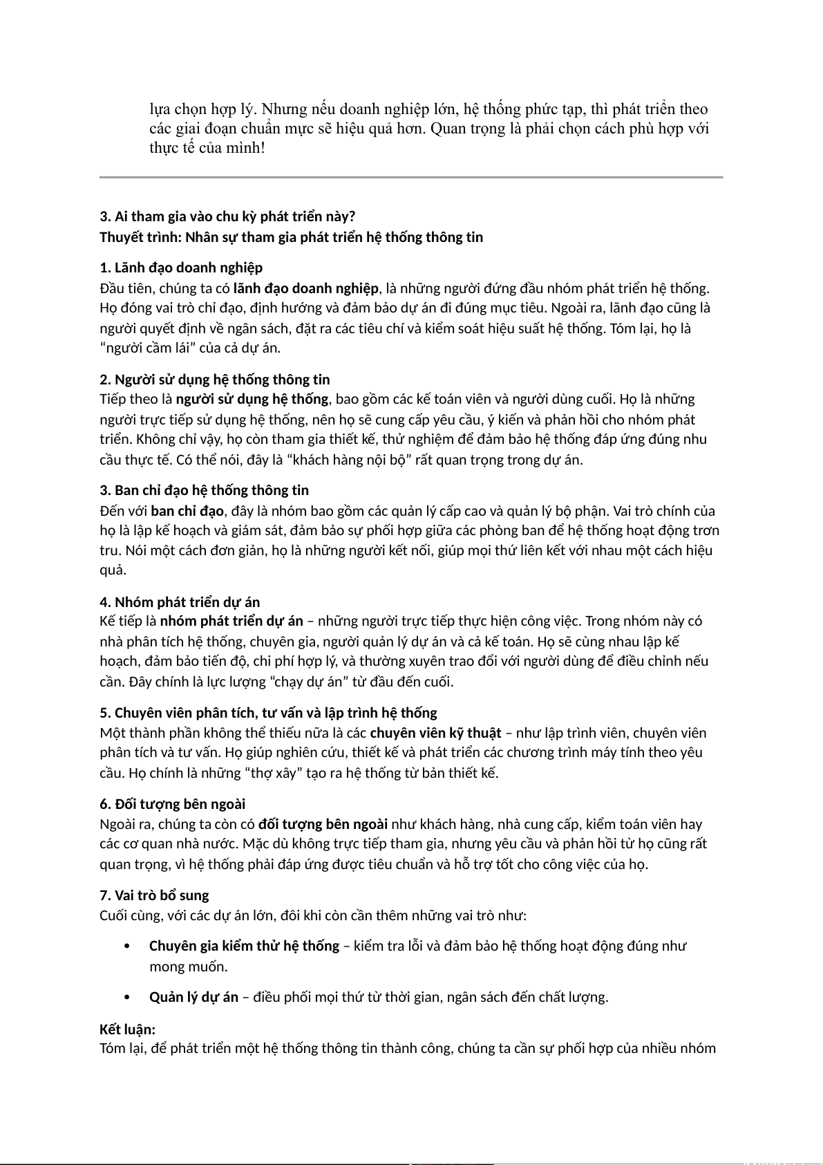 nhà phân tích hệ thống, chuyên gia, người quản lý dự án và cả kế toán. Họ sẽ cùng nhau lập kế
