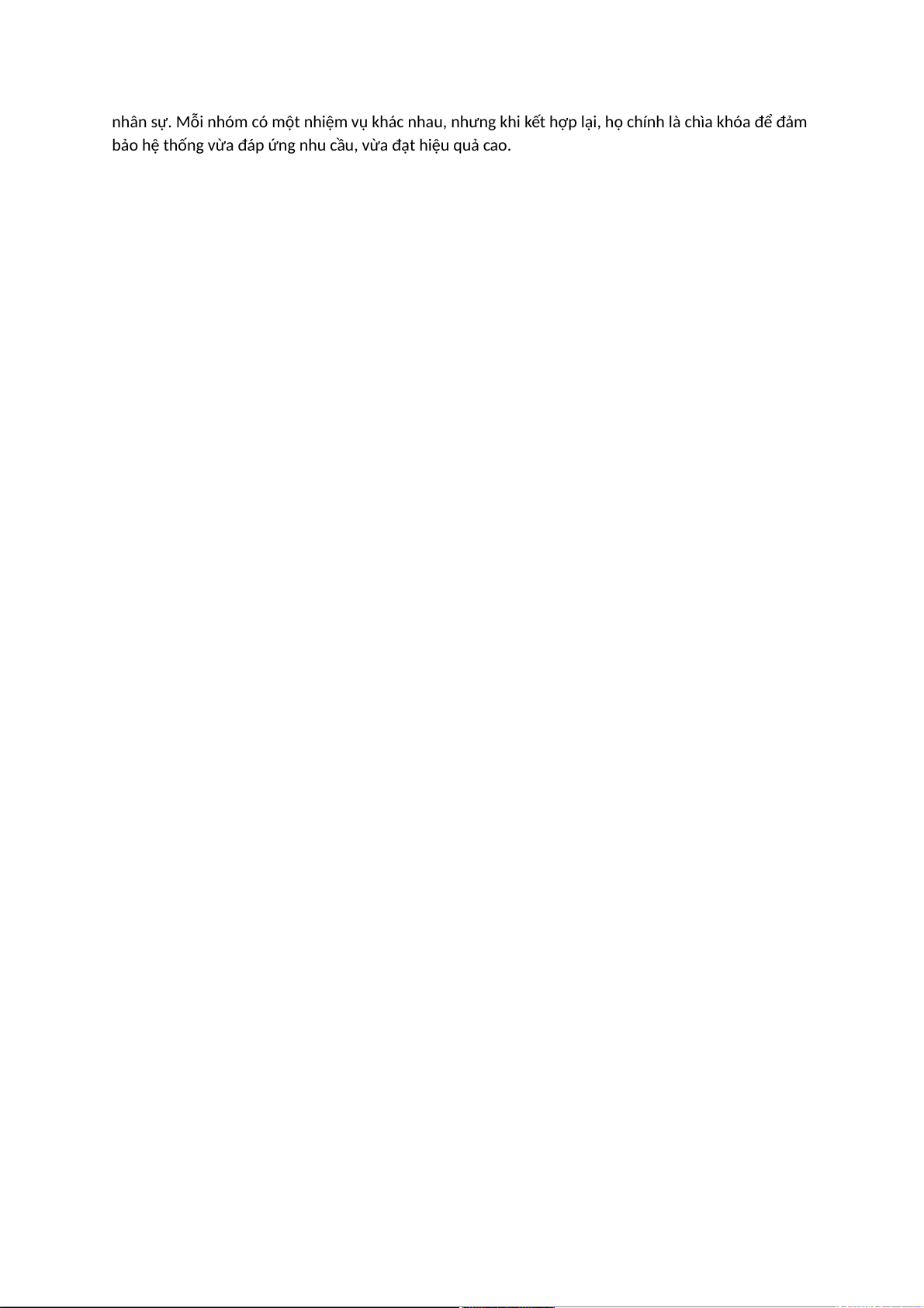 nhân sự. Mỗi nhóm có một nhiệm vụ khác nhau, nhưng khi kết hợp lại, họ chính là chìa khóa để đảm
