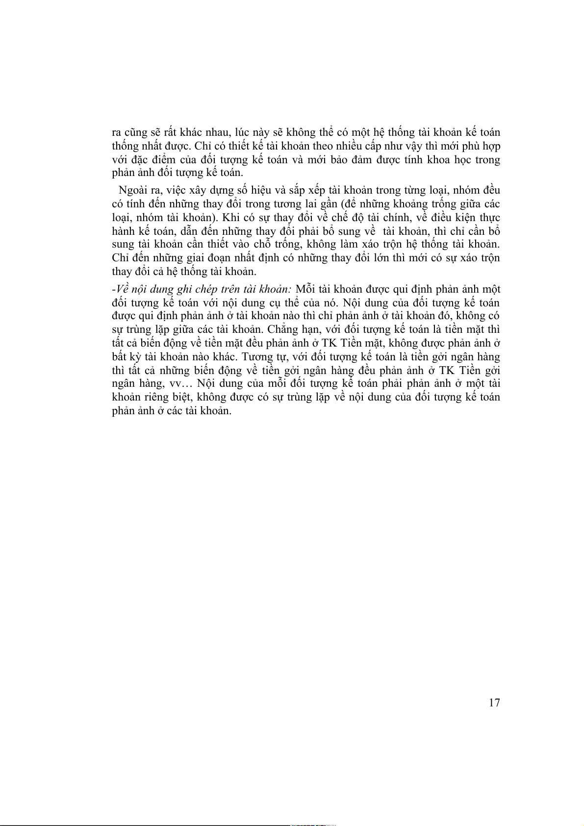 khoản riêng biệt, không được có sự trùng lặp về nội dung của đối tượng kế toán