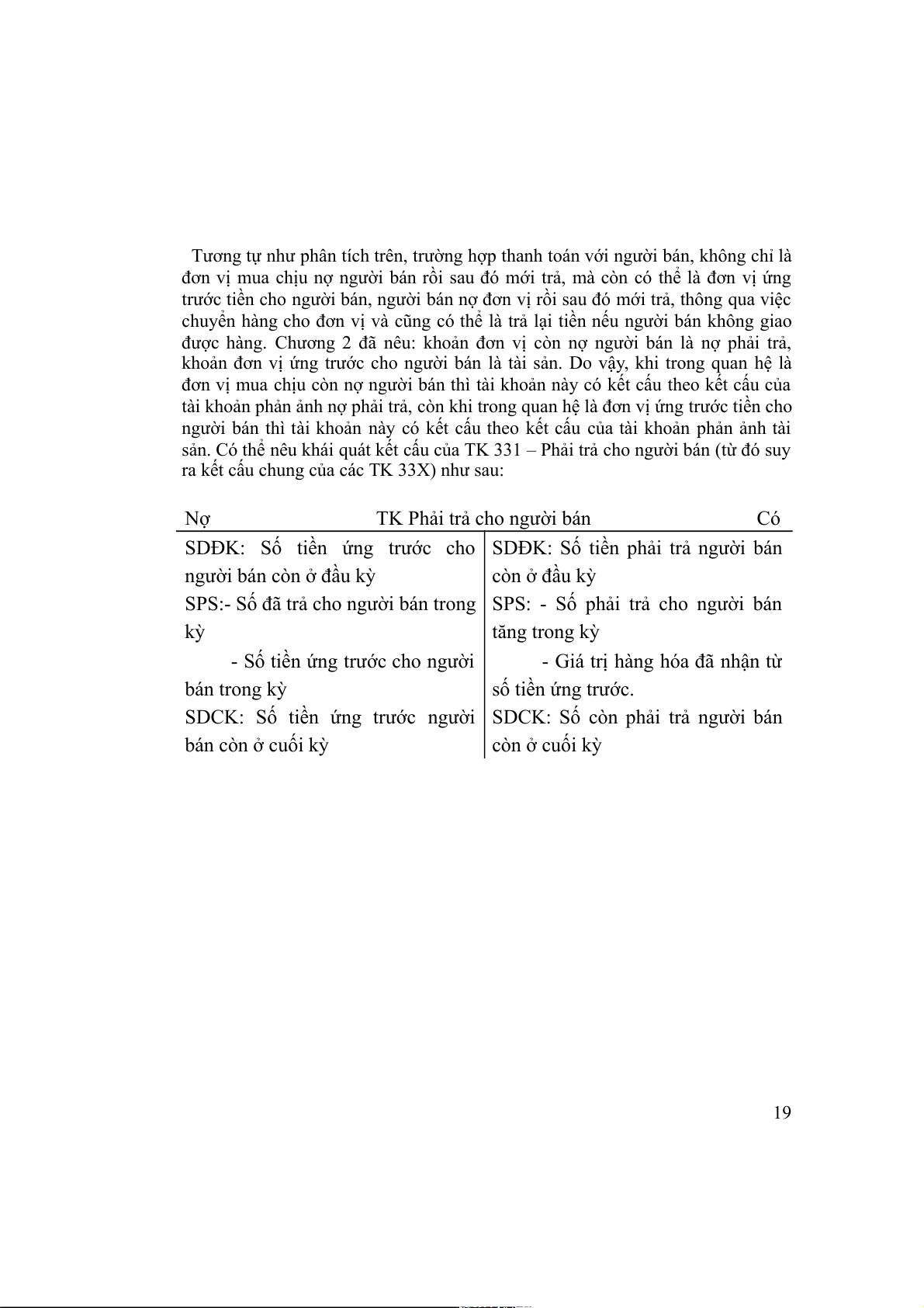 SDCK: Số tiền ứng trước người SDCK: Số còn phải trả người bán bán còn ở cuối kỳ còn ở cuối kỳ 19