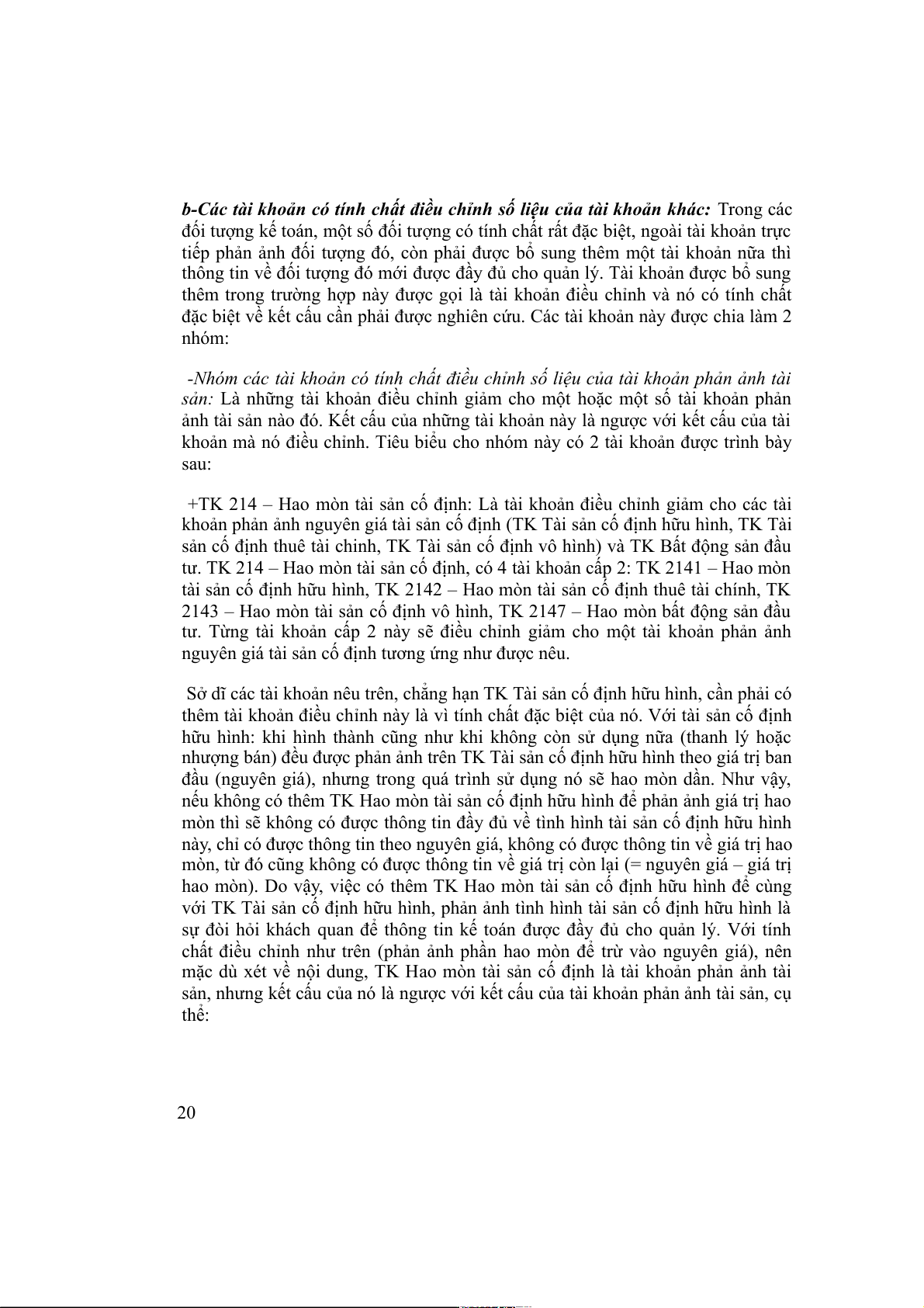 b-Các tài khoản có tính chất điều chỉnh số liệu của tài khoản khác: Trong các