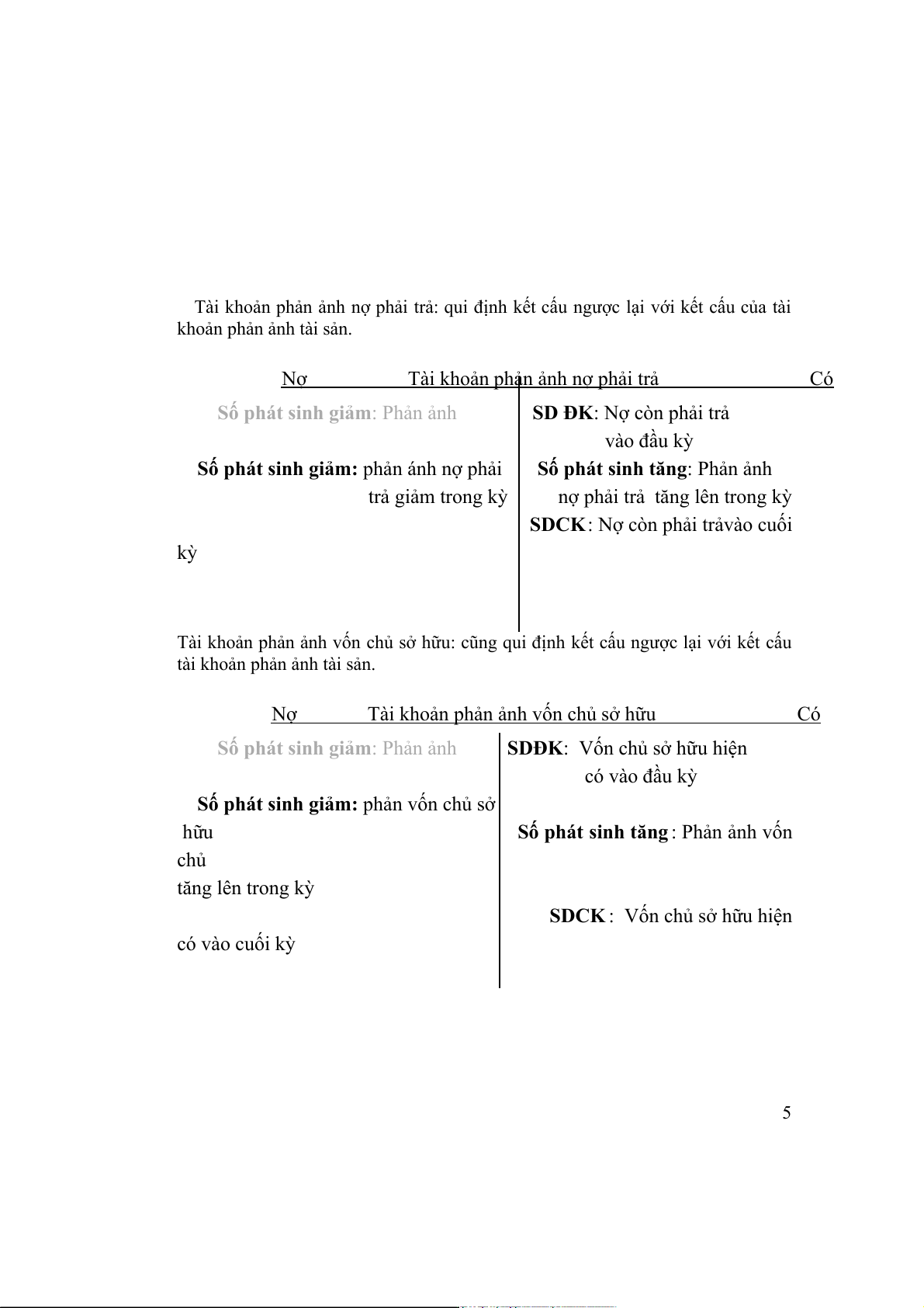 Như đã trình bày ở chương 2, đối tượng kế toán gồm 5 yếu tố: tài sản, nợ phải