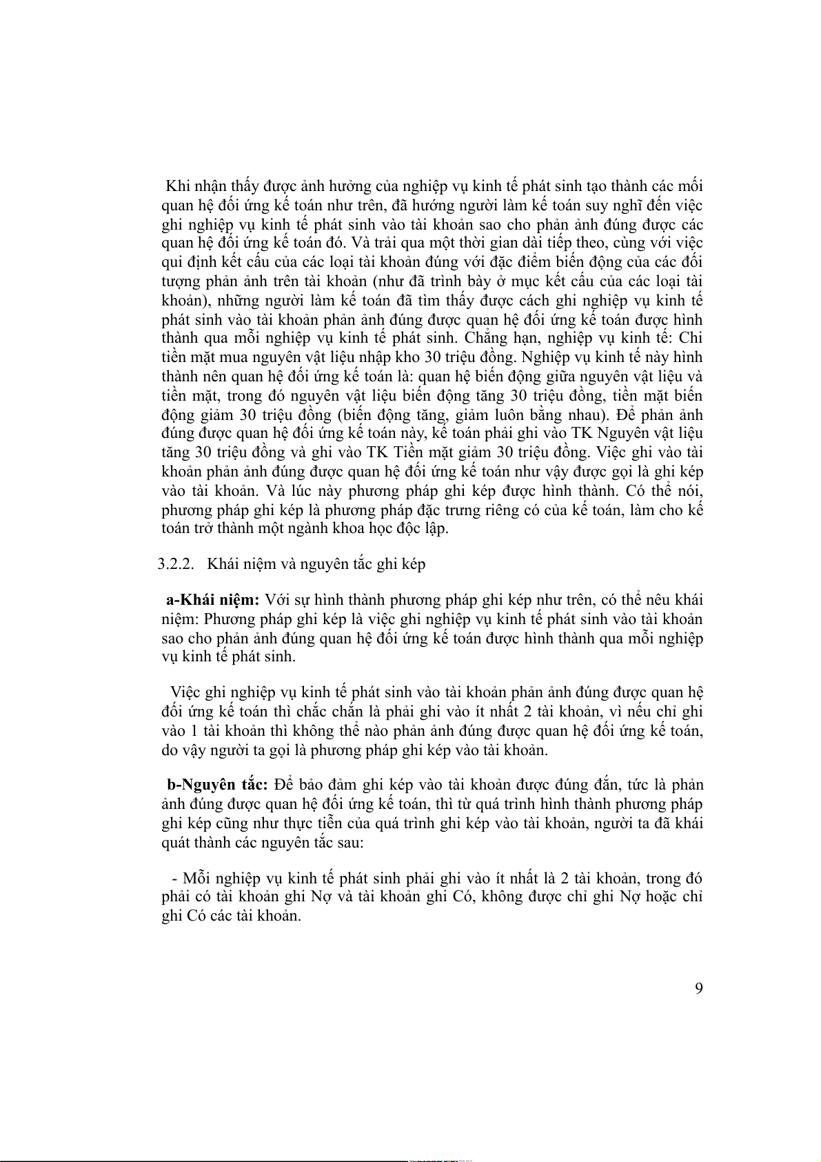 nguyên tắc của nó trong việc ghi nghiệp vụ kinh tế phát sinh vào tài khoản.