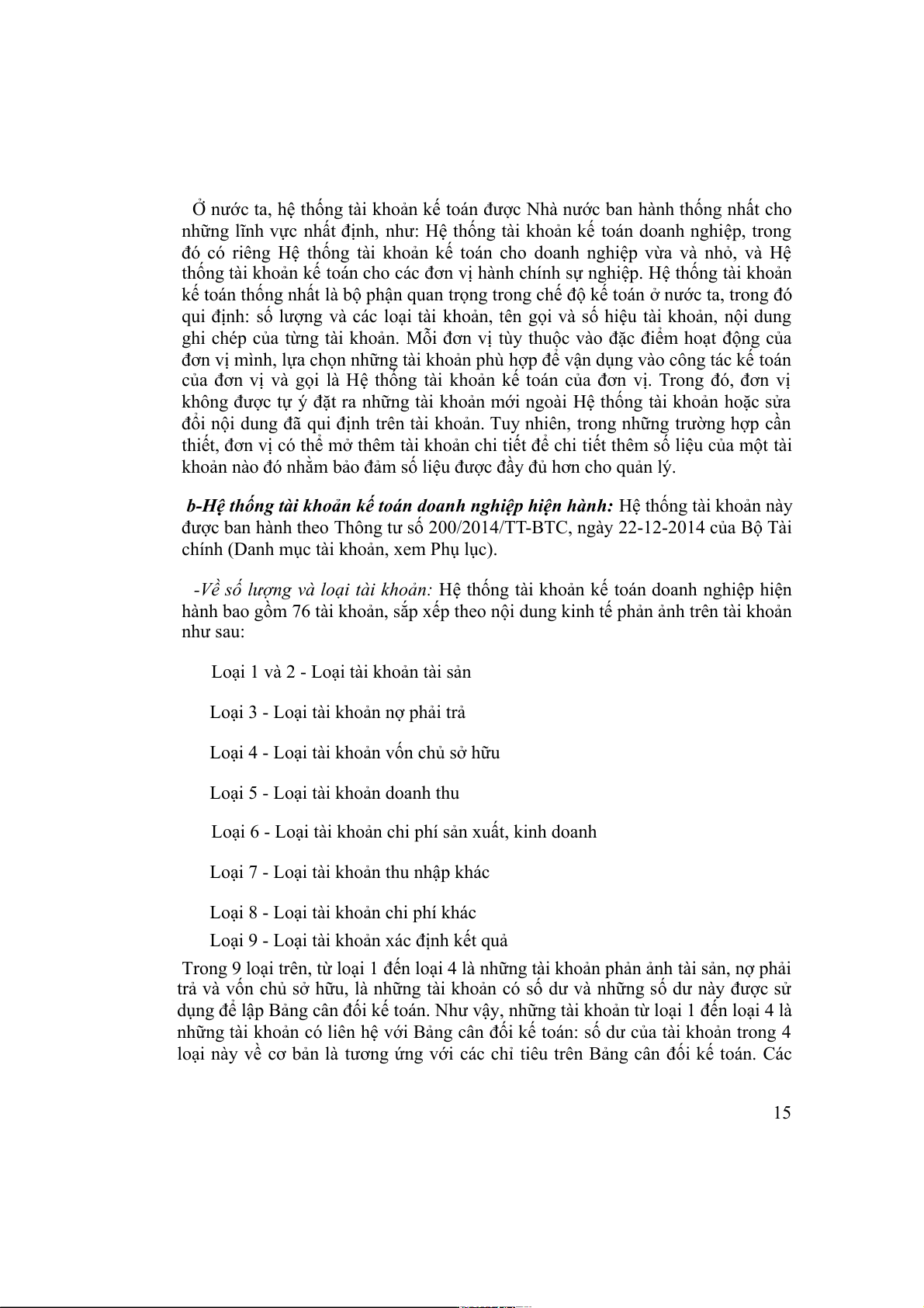loại, nhóm tài khoản). Khi có sự thay đổi về chế độ tài chính, về điều kiện thực
