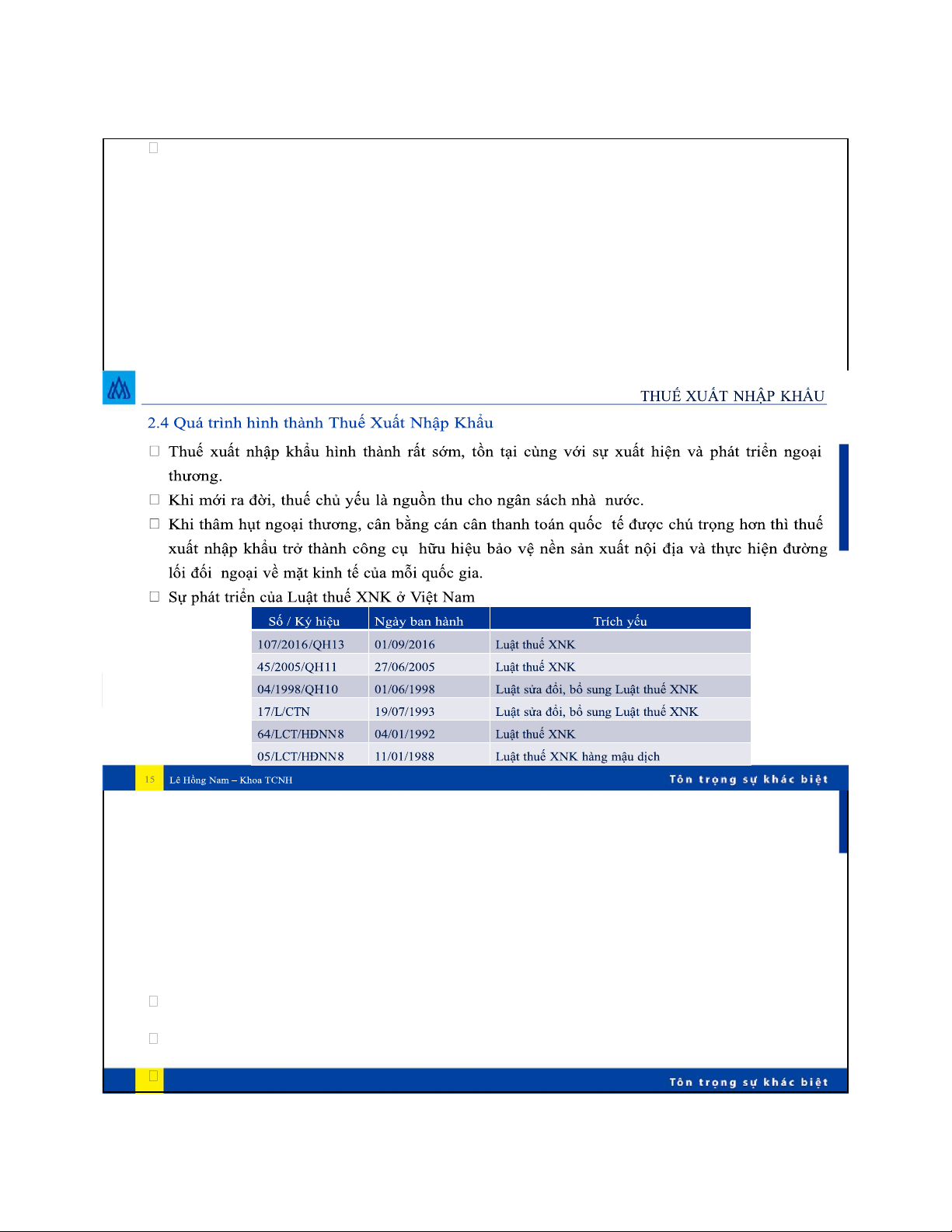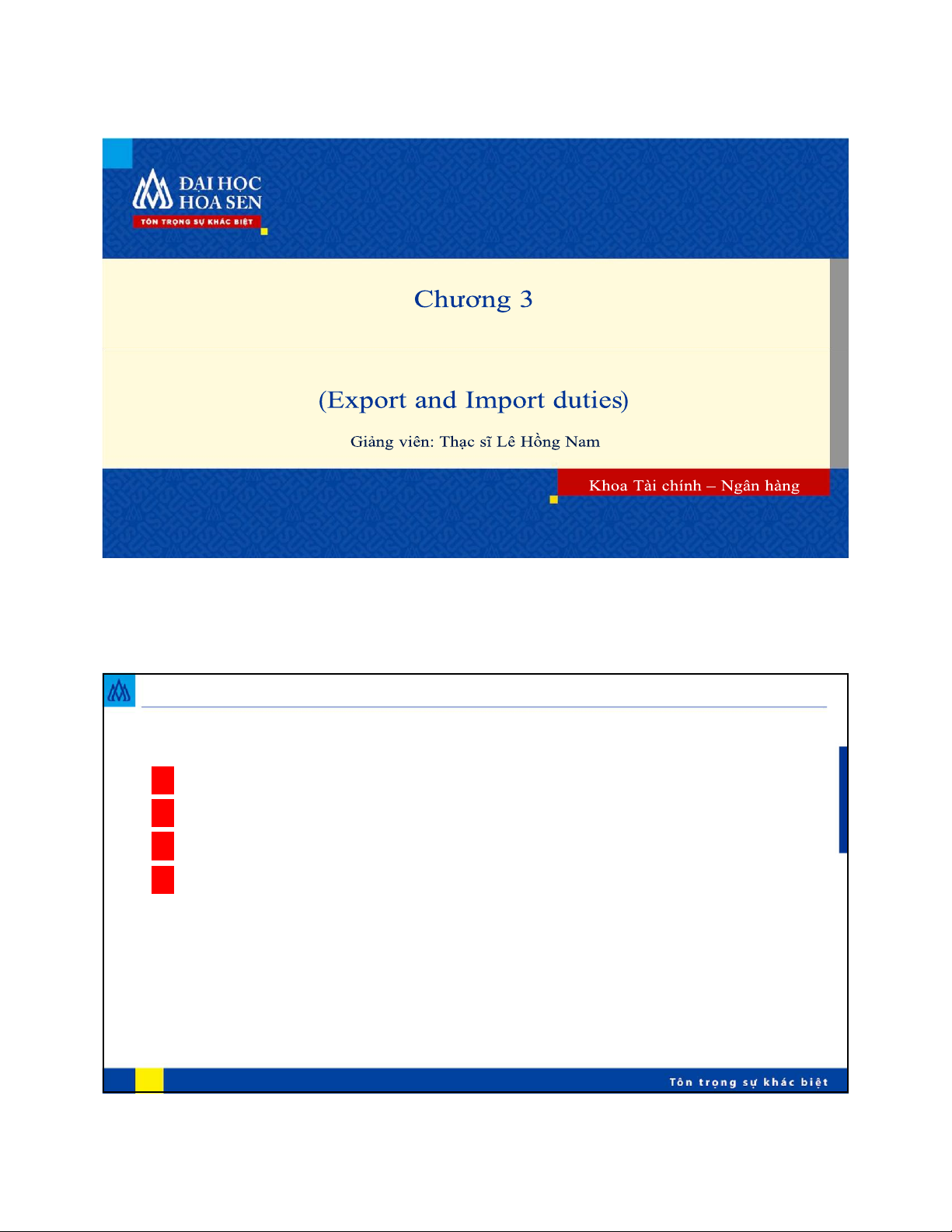 29 Lê Hồng Nam – Khoa TCNH  Lê Hồng Nam – Khoa TCNH  15    lOMoAR cPSD| 47206071 24/04/2025    THUẾ XUẤT NHẬP KHẨU