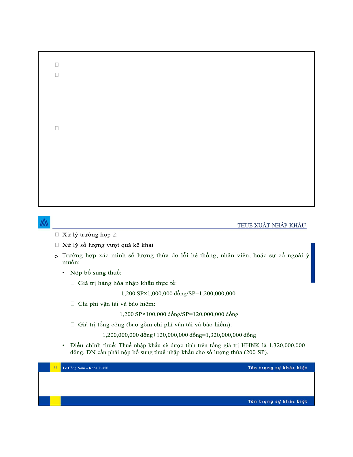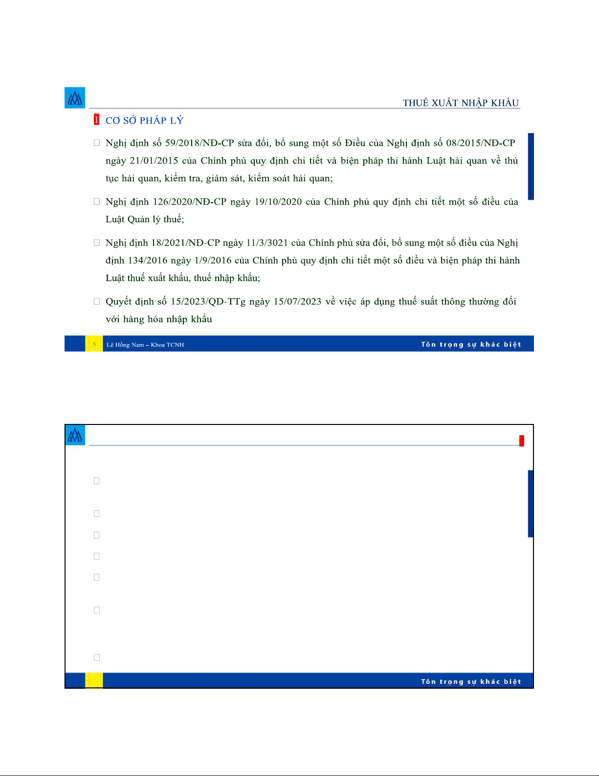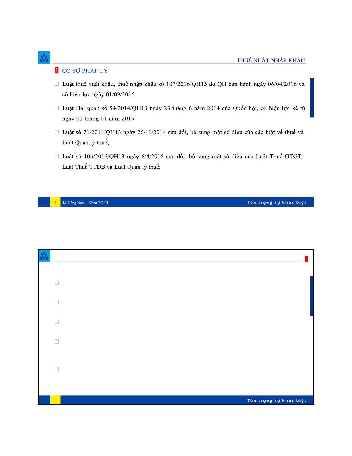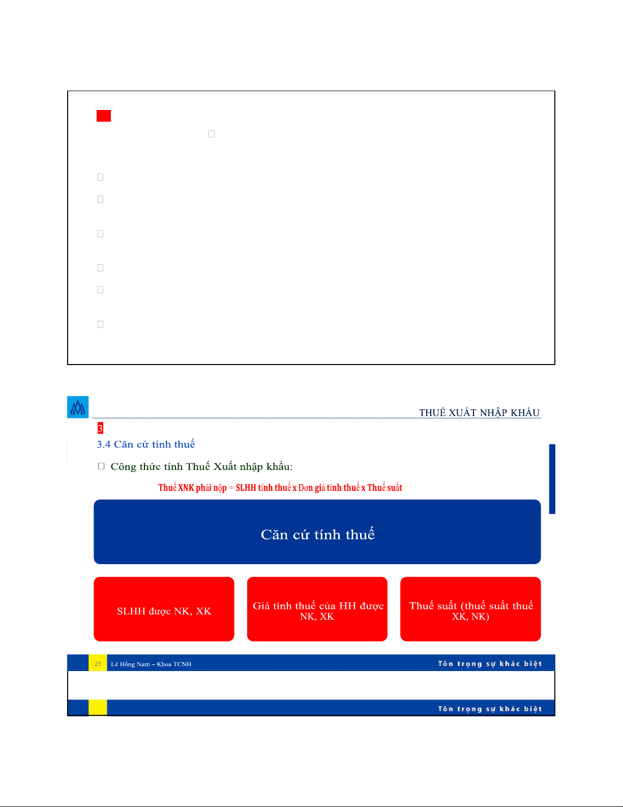 37 Lê Hồng Nam – Khoa TCNH  Lê Hồng Nam – Khoa TCNH  19    lOMoAR cPSD| 47206071 24/04/2025    THUẾ XUẤT NHẬP KHẨU