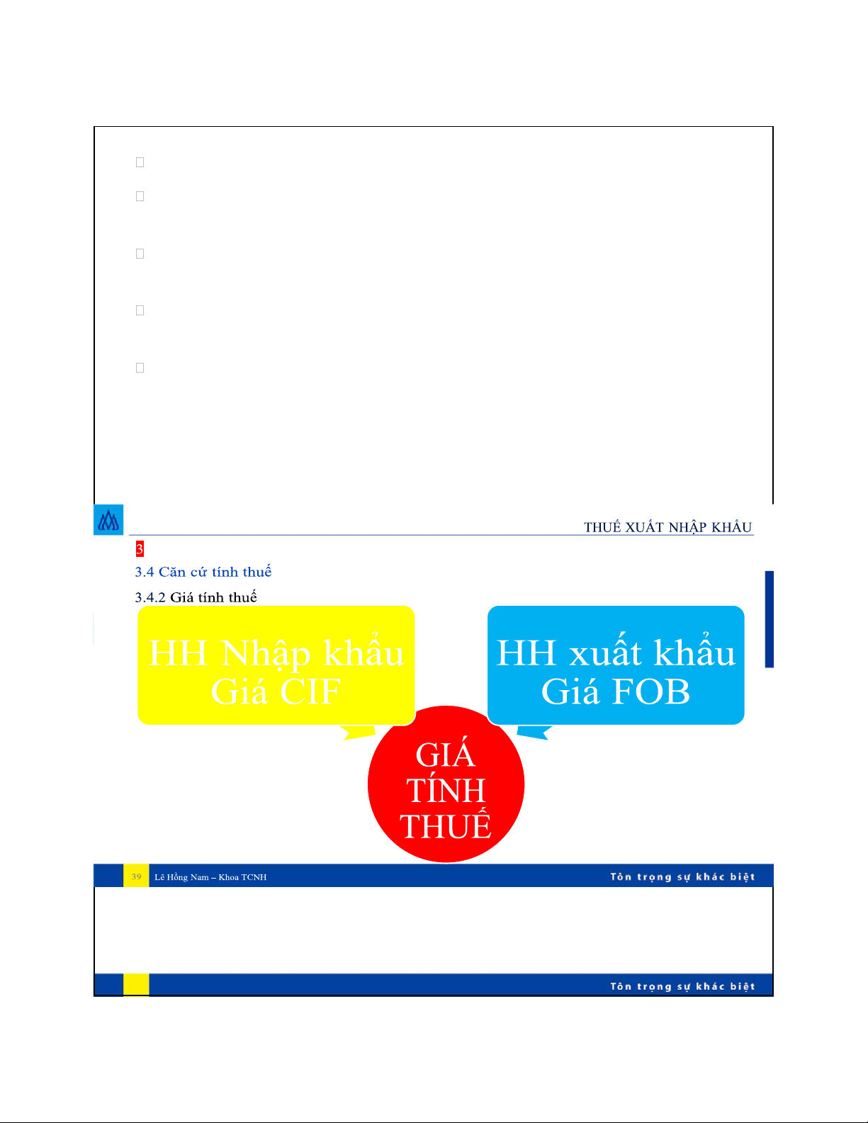 gồm cả giá mua và chi phí vận tải, bảo hiểm.  34                                                              Lê Hồng Nam – Khoa TCNH  18    lOMoAR cPSD| 47206071 24/04/2025    THUẾ XUẤT NHẬP KHẨU