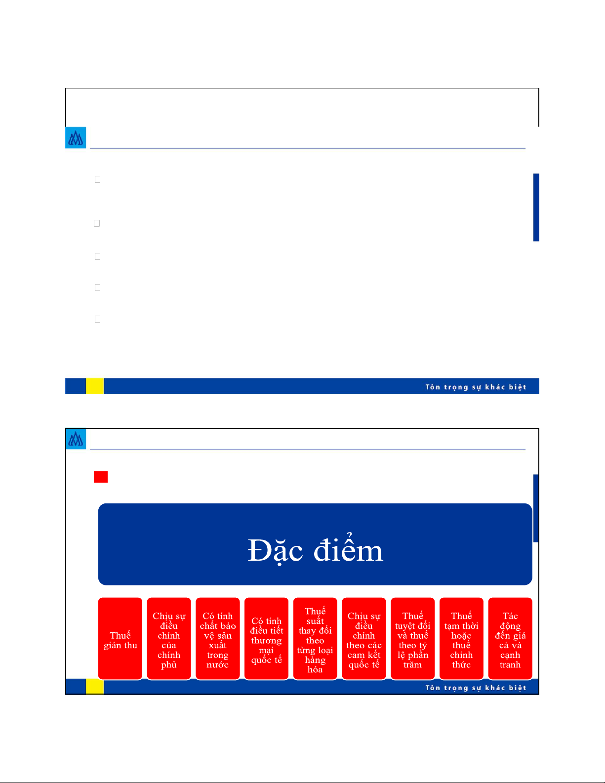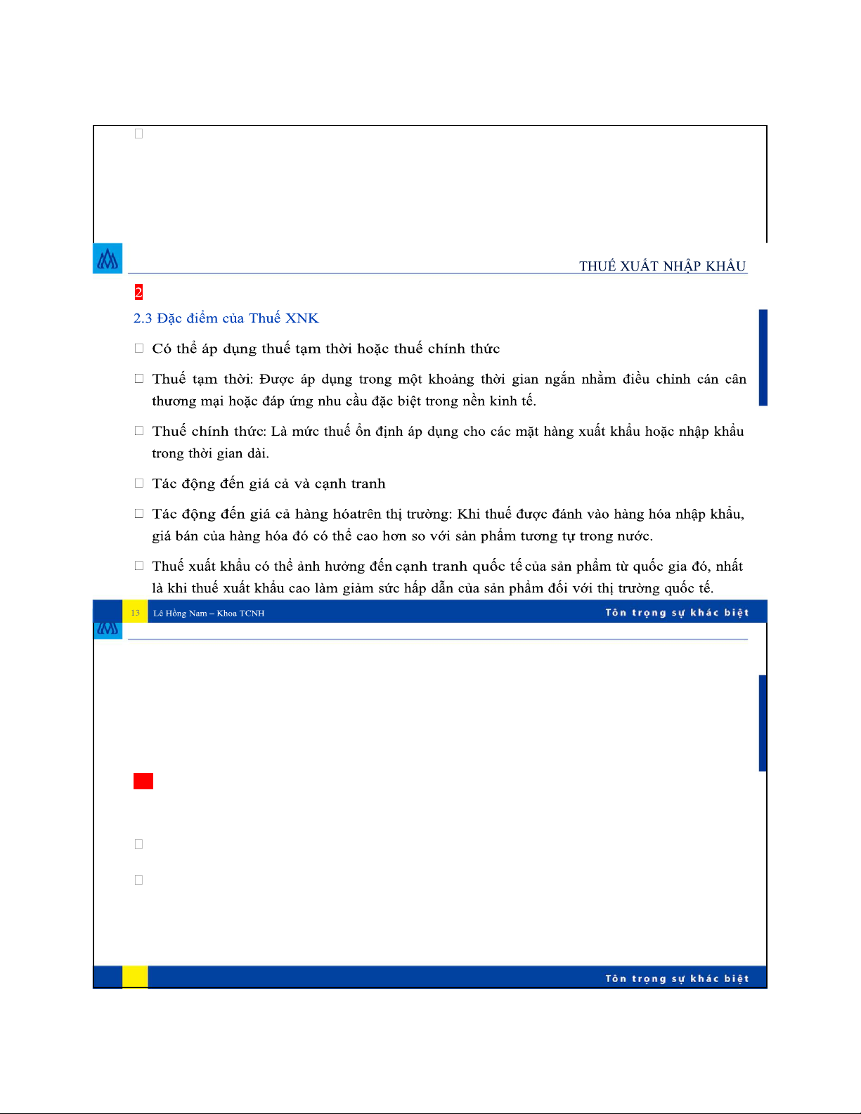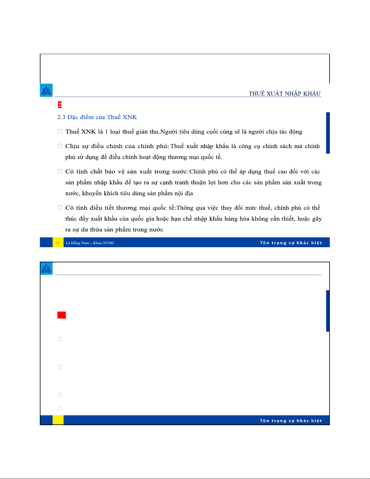 2.3 Đặc điểm của Thuế XNK                                                                                                          Lê Hồng Nam – Khoa TCNH  5    lOMoAR cPSD| 47206071 24/04/2025    10