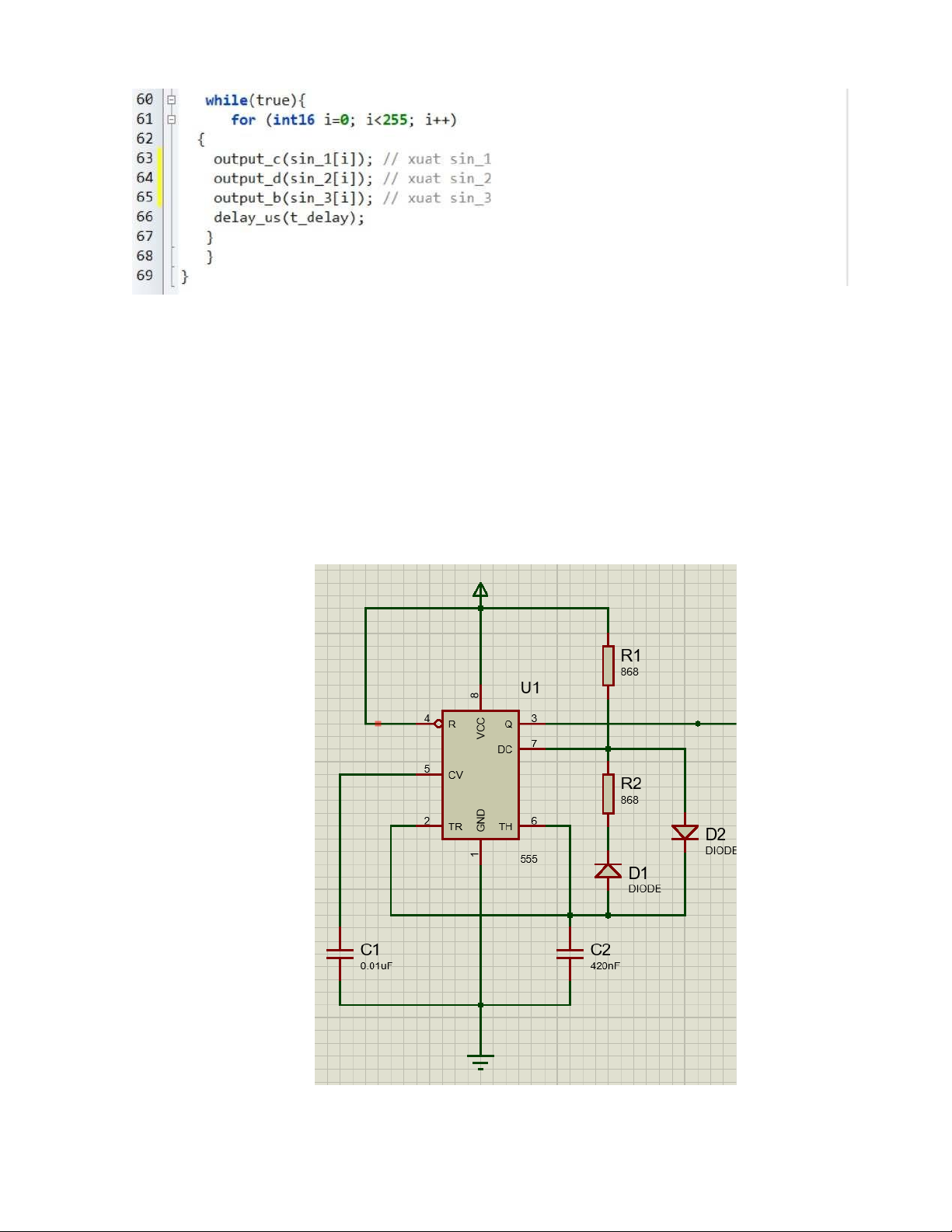 Chúng ta có thể thay đổi tần số của sóng sin bằng cách thay đổi thời gian t_delay với công thức như sau: 1 t_delay = (us) (3.1) f ∗255∗10−6