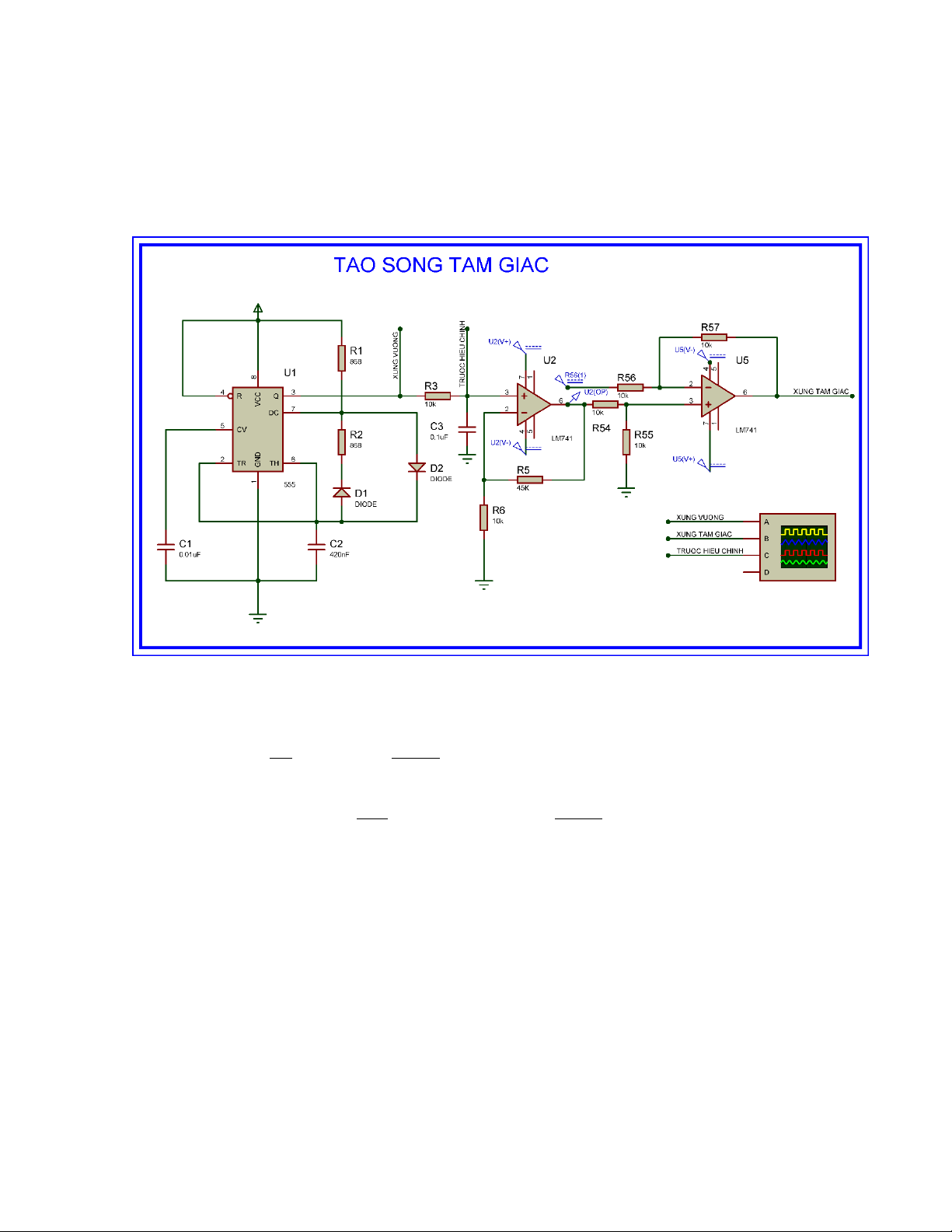 o Dùng mạch dao động RC để chuyển xung vuông thành xung tam giác có chu kỳ không đổi