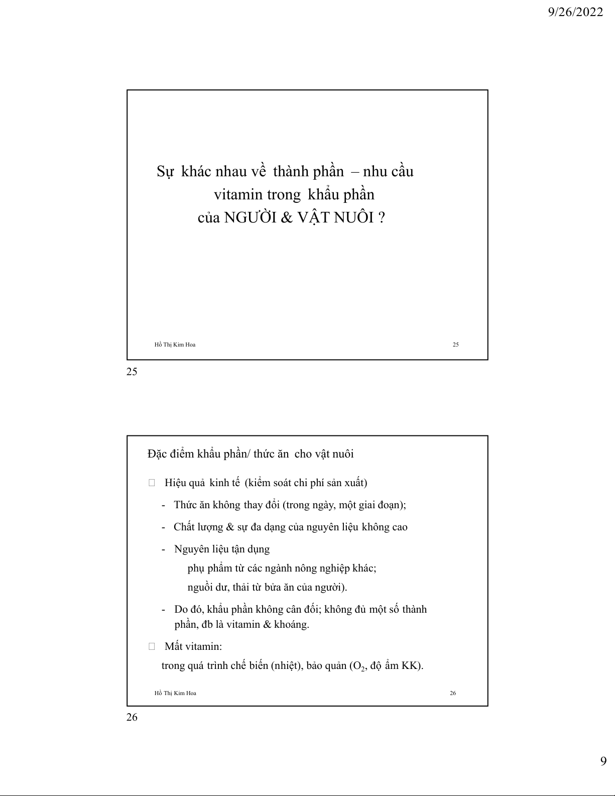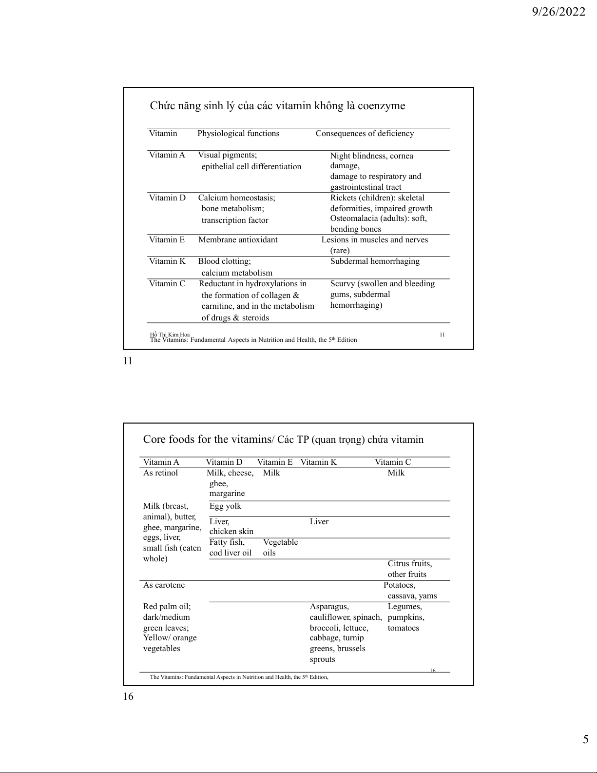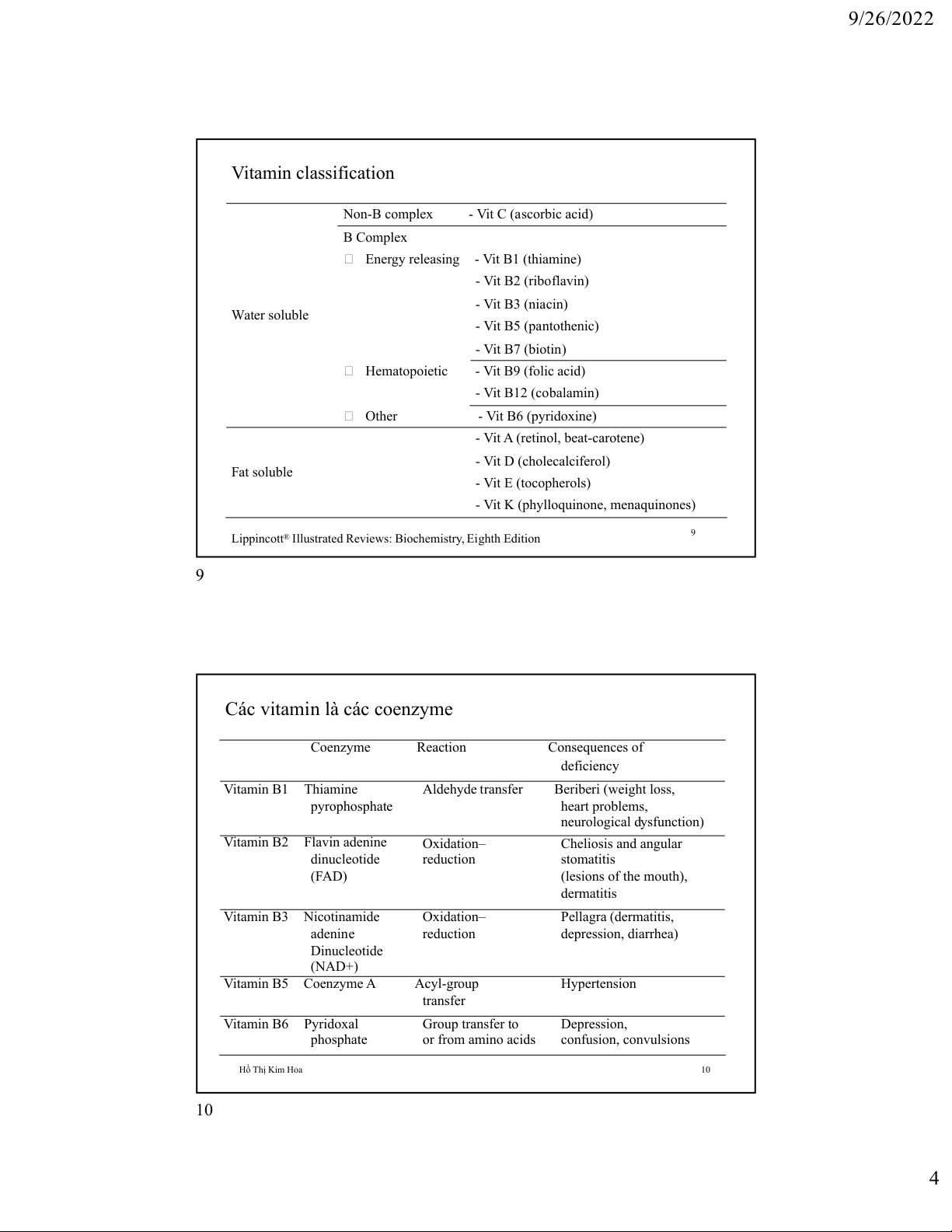 9/26/2022 Sinh hóa Đại cương Biology of Macromolecules Vitamin & Khoáng Vitamins & Minerals (Micronutrients) Hồ Thị Kim Hoa 1 1 Vitamin Hồ Thị Kim Hoa 2 2 1 9/26/2022