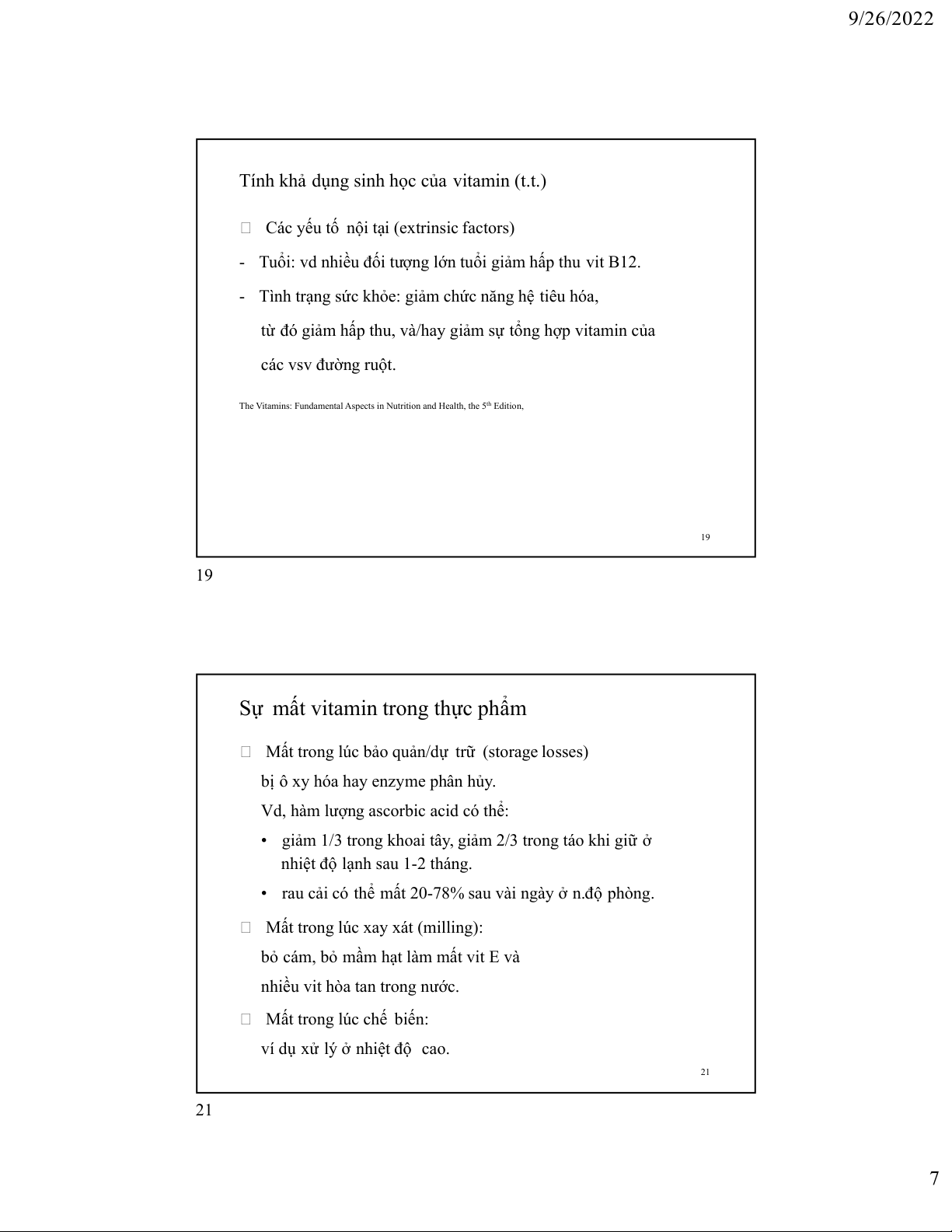 phần, đb là vitamin & khoáng. Mất vitamin: