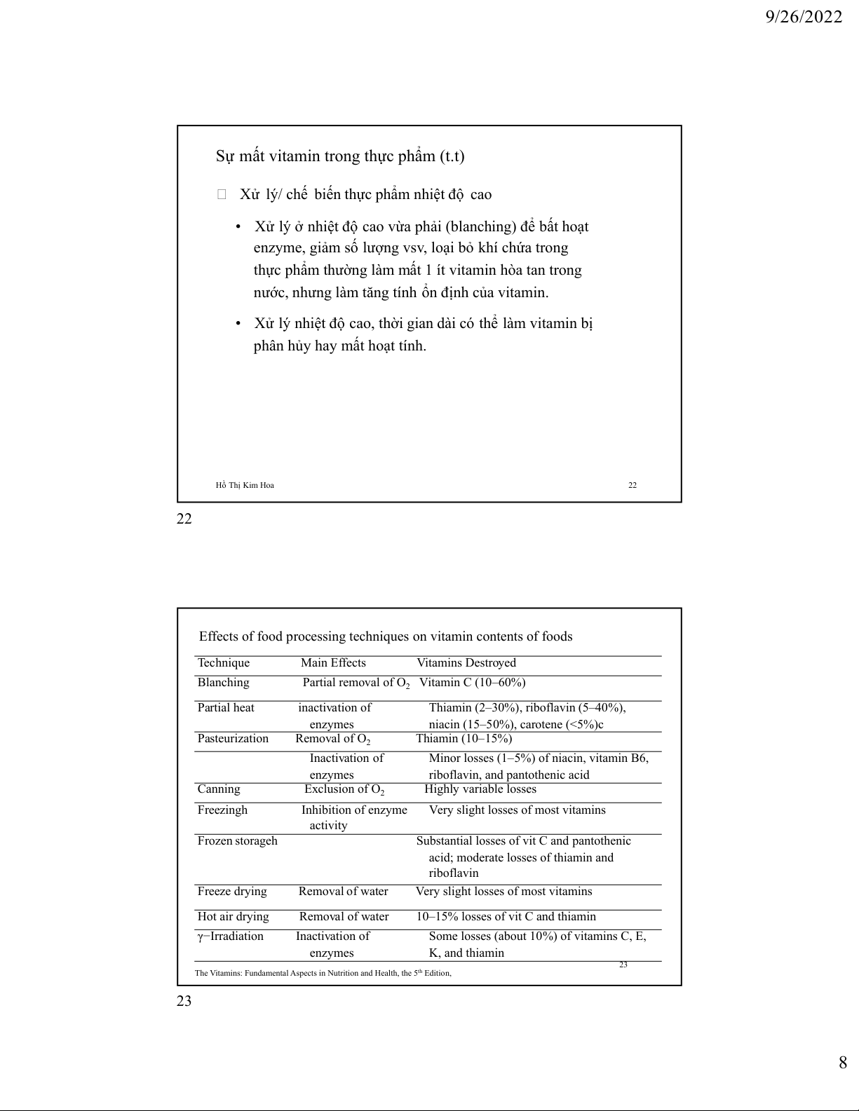 • Xử lý nhiệt độ cao, thời gian dài có thể làm vitamin bị