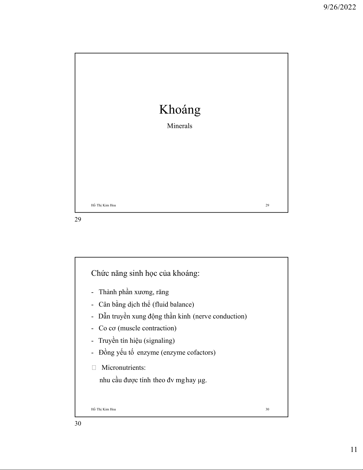 The Vitamins: Fundamental Aspects in Nutrition and Health, the 5th Edition 28 28 10 9/26/2022 Khoáng Minerals Hồ Thị Kim Hoa 29 29