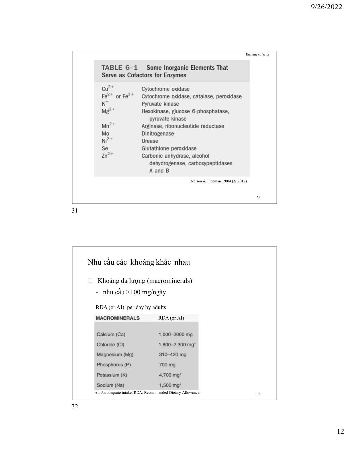 nhu cầu được tính theo đv mghay μg. Hồ Thị Kim Hoa 30 30 11 9/26/2022 Enzyme cofactor
