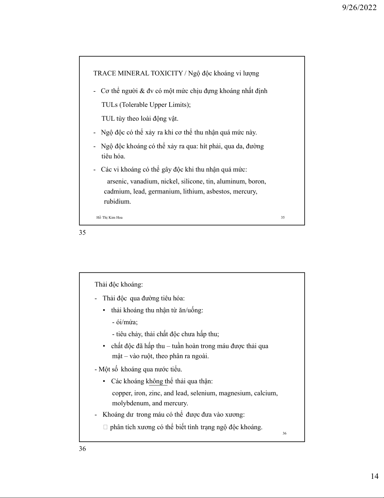cadmium, lead, germanium, lithium, asbestos, mercury, rubidium. Hồ Thị Kim Hoa 35 35 Thải độc khoáng: