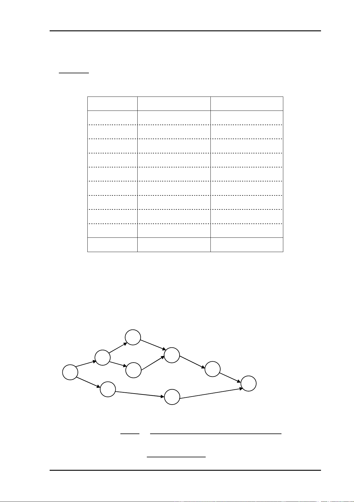 Thứ tự thực hiện A 10 - B 11 Sau A C 5 Sau B D 4 Sau B E 12 Sau A F 3 Sau C, D G 7 Sau F H 11 Sau E I 3 Sau G, H 66 Cho biết: