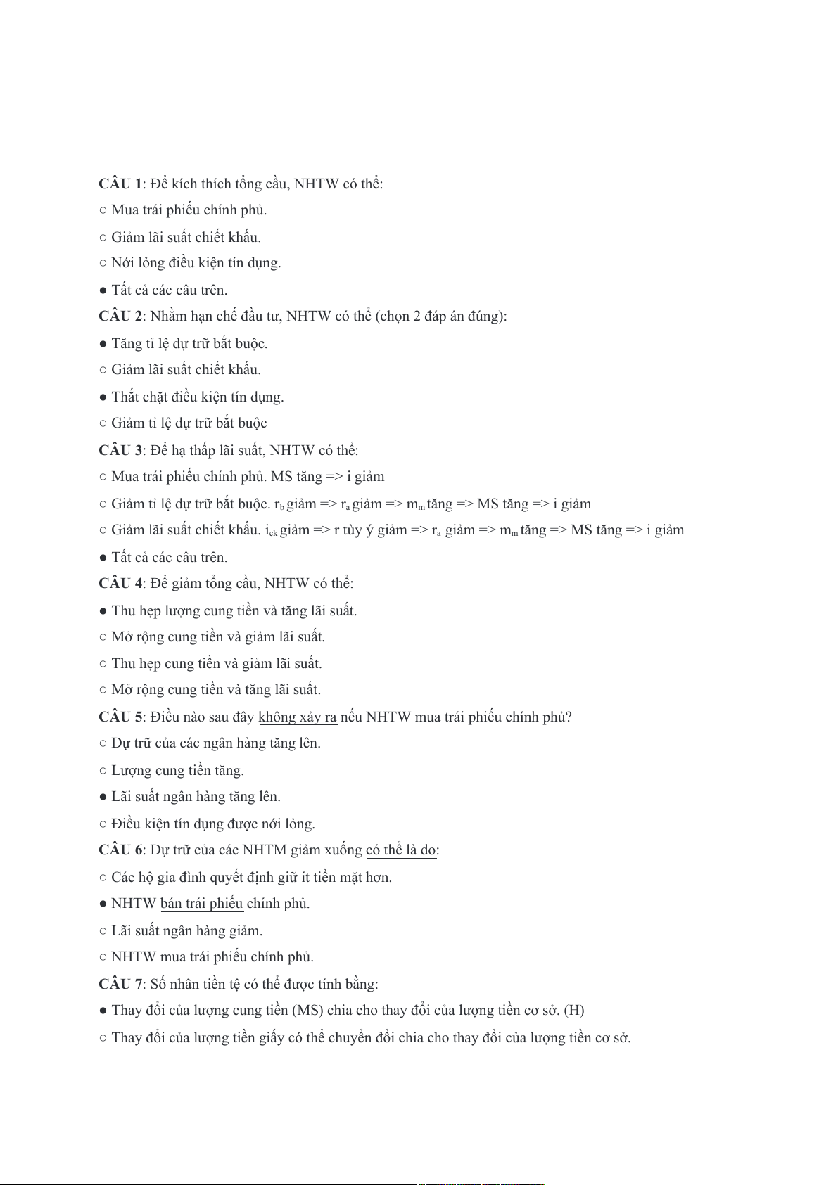 CÂU 1: Để kích thích tổng cầu, NHTW có thể: