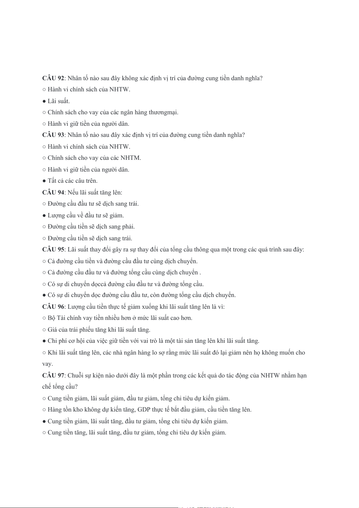 CÂU 93: Nhân tố nào sau đây xác định vị trí của đường cung tiền danh nghĩa?