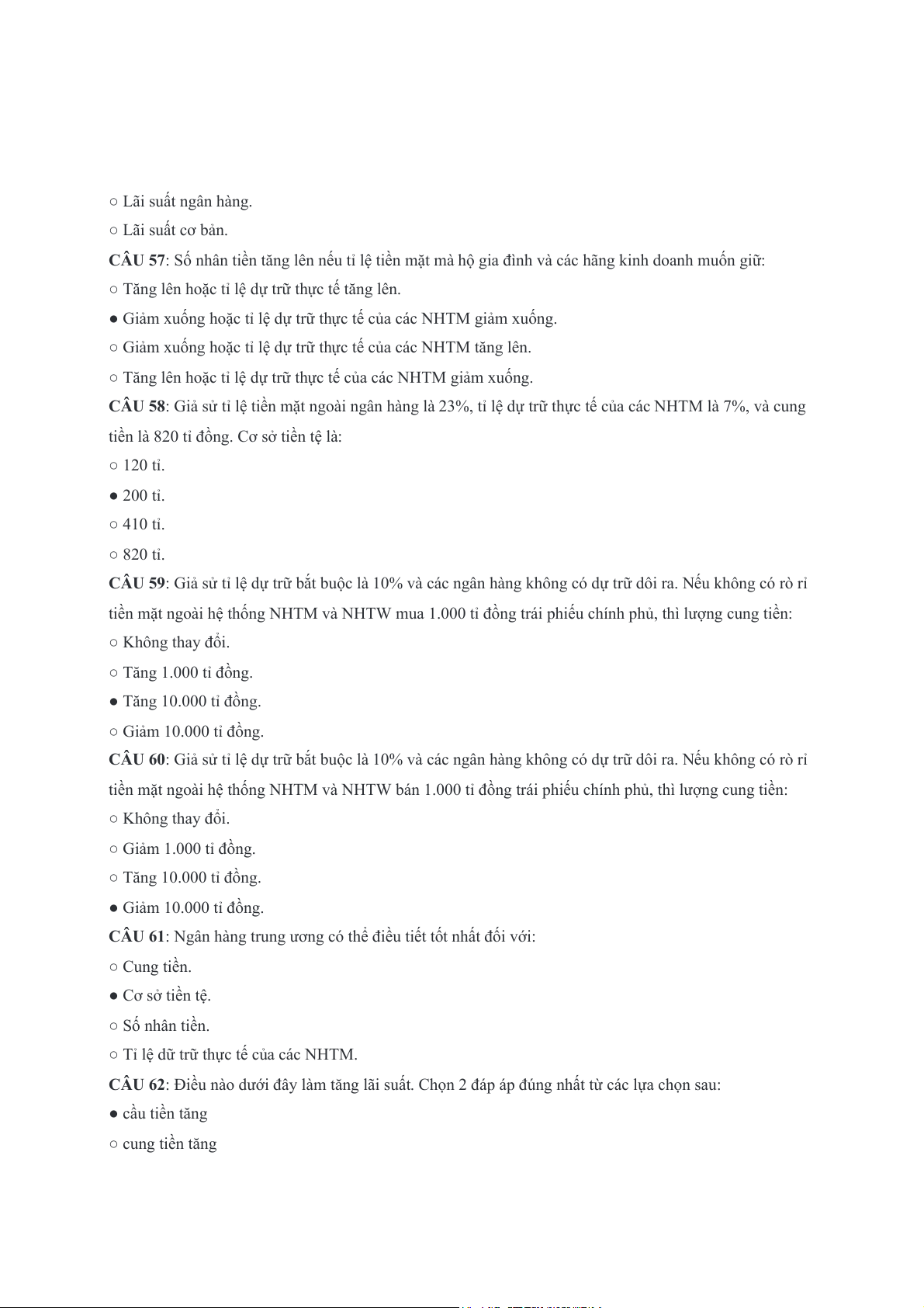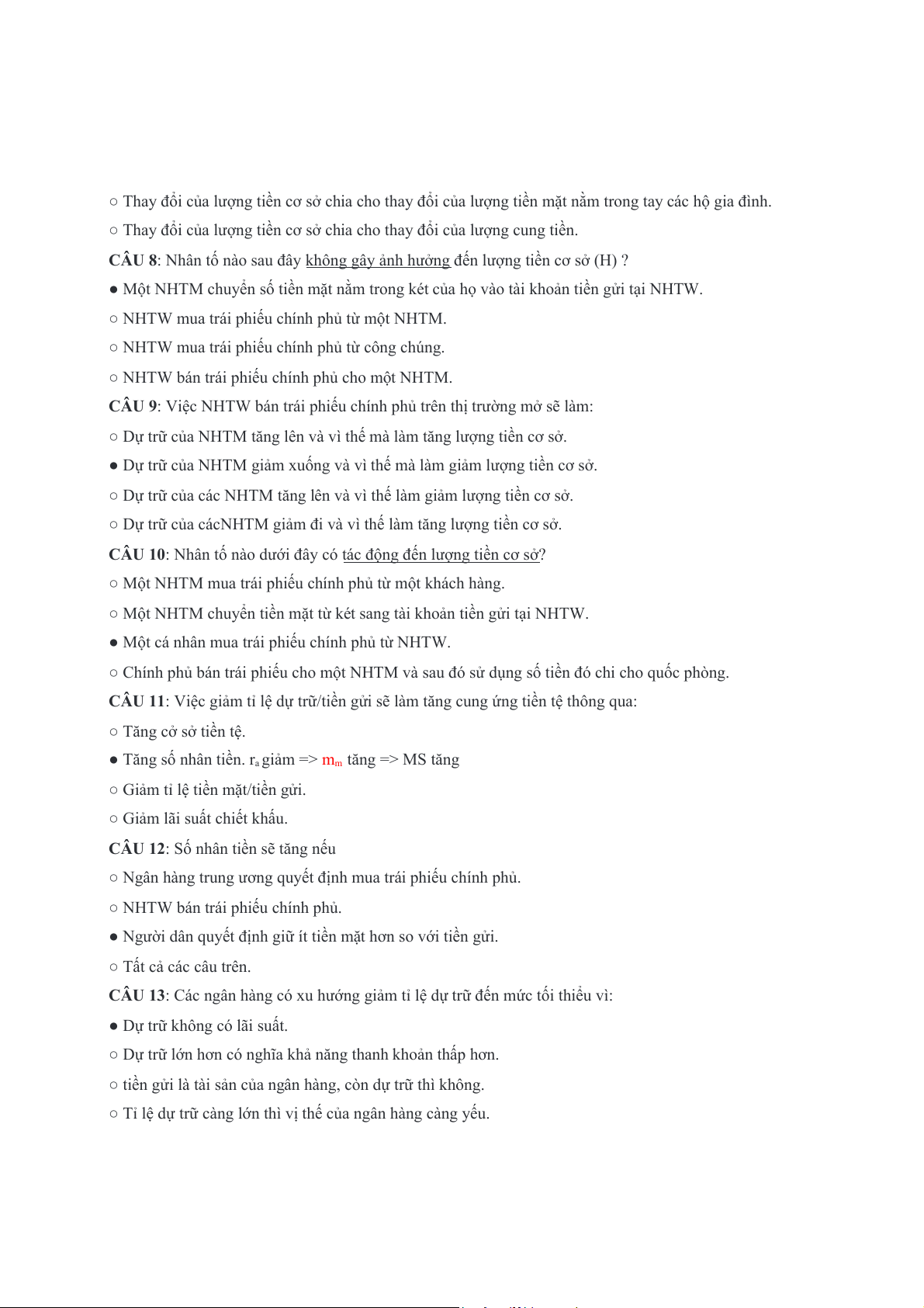 CÂU 10: Nhân tố nào dưới đây có tác động đến lượng tiền cơ sở?