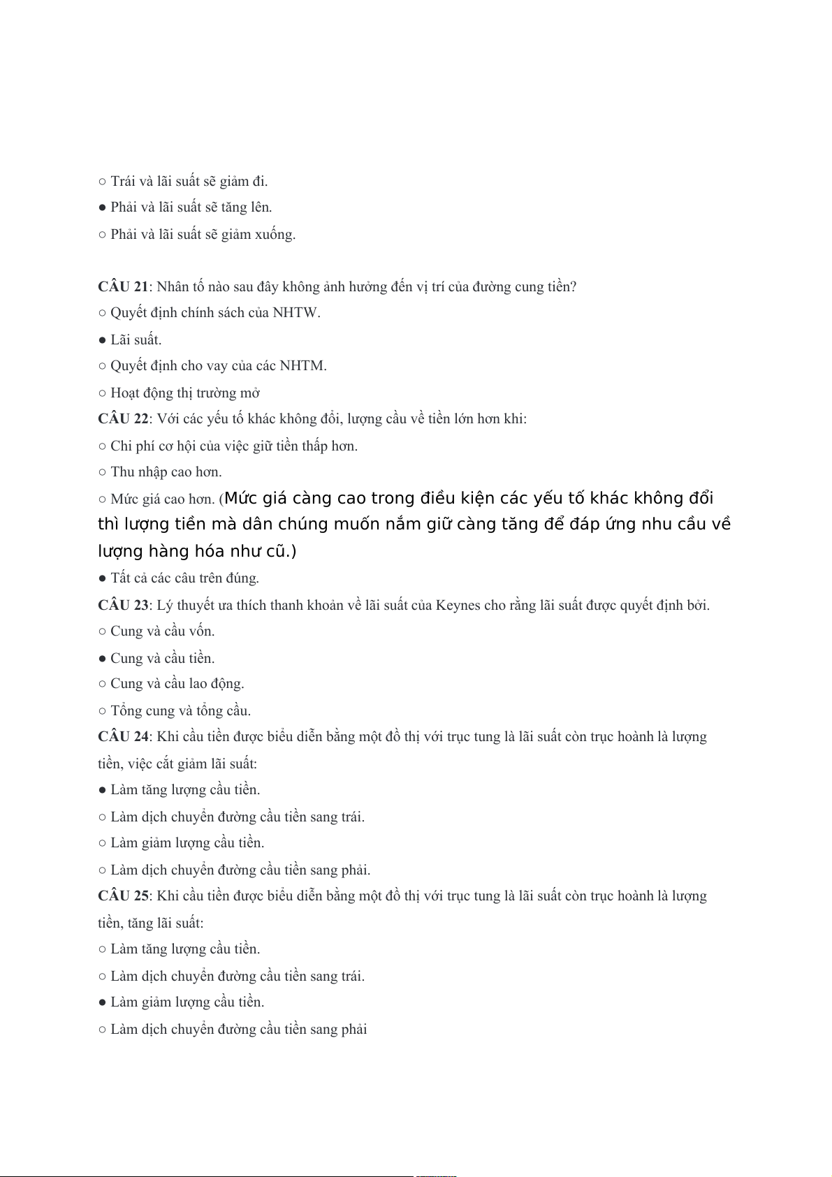CÂU 21: Nhân tố nào sau đây không ảnh hưởng đến vị trí của đường cung tiền?