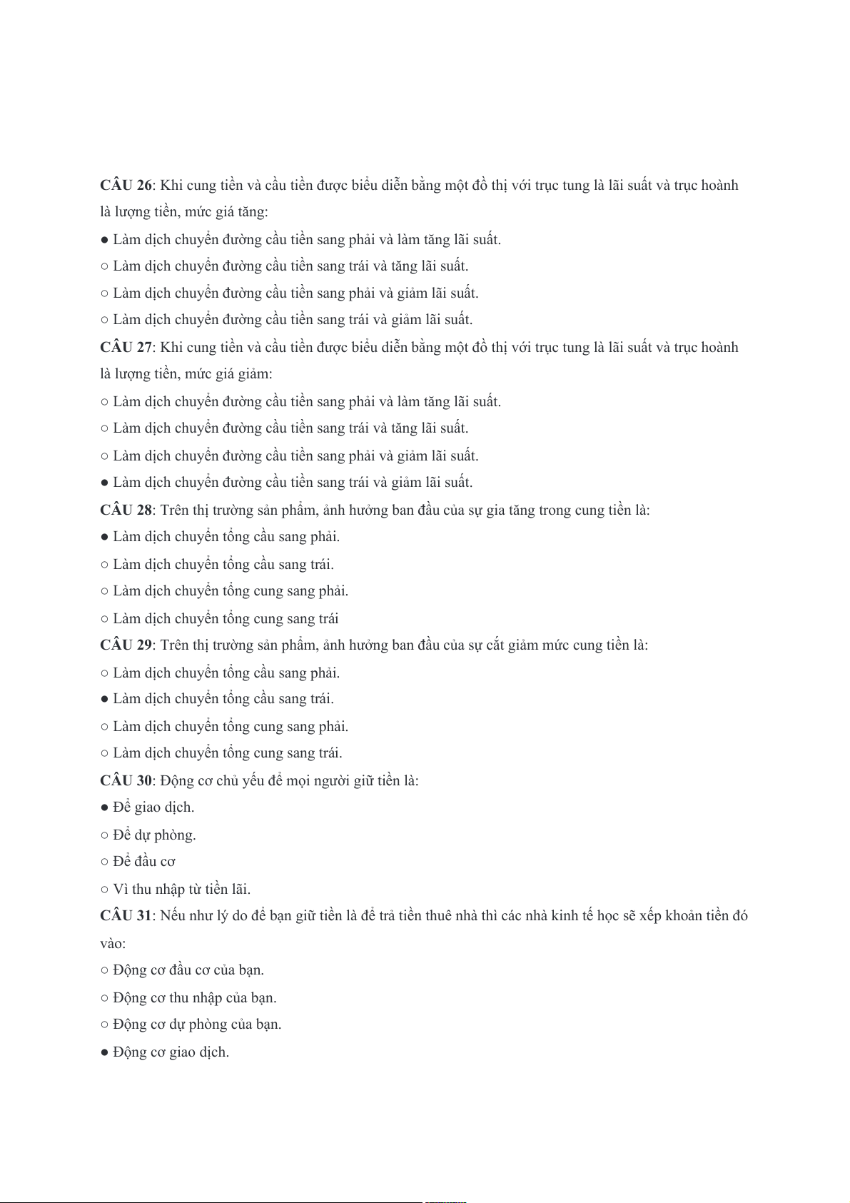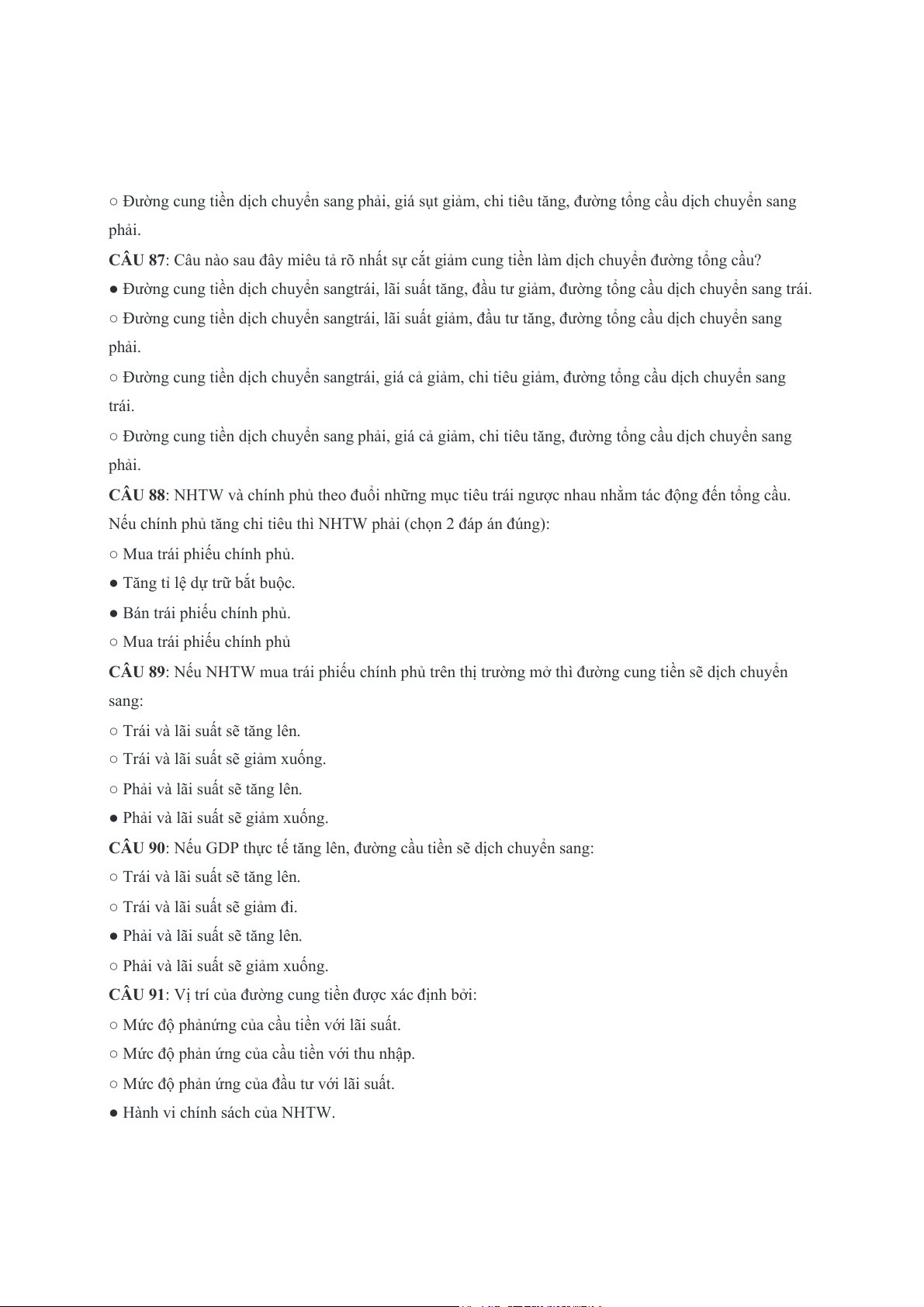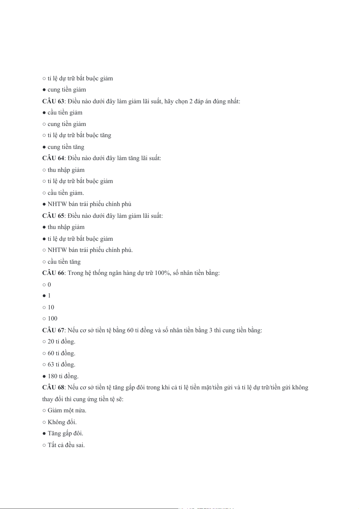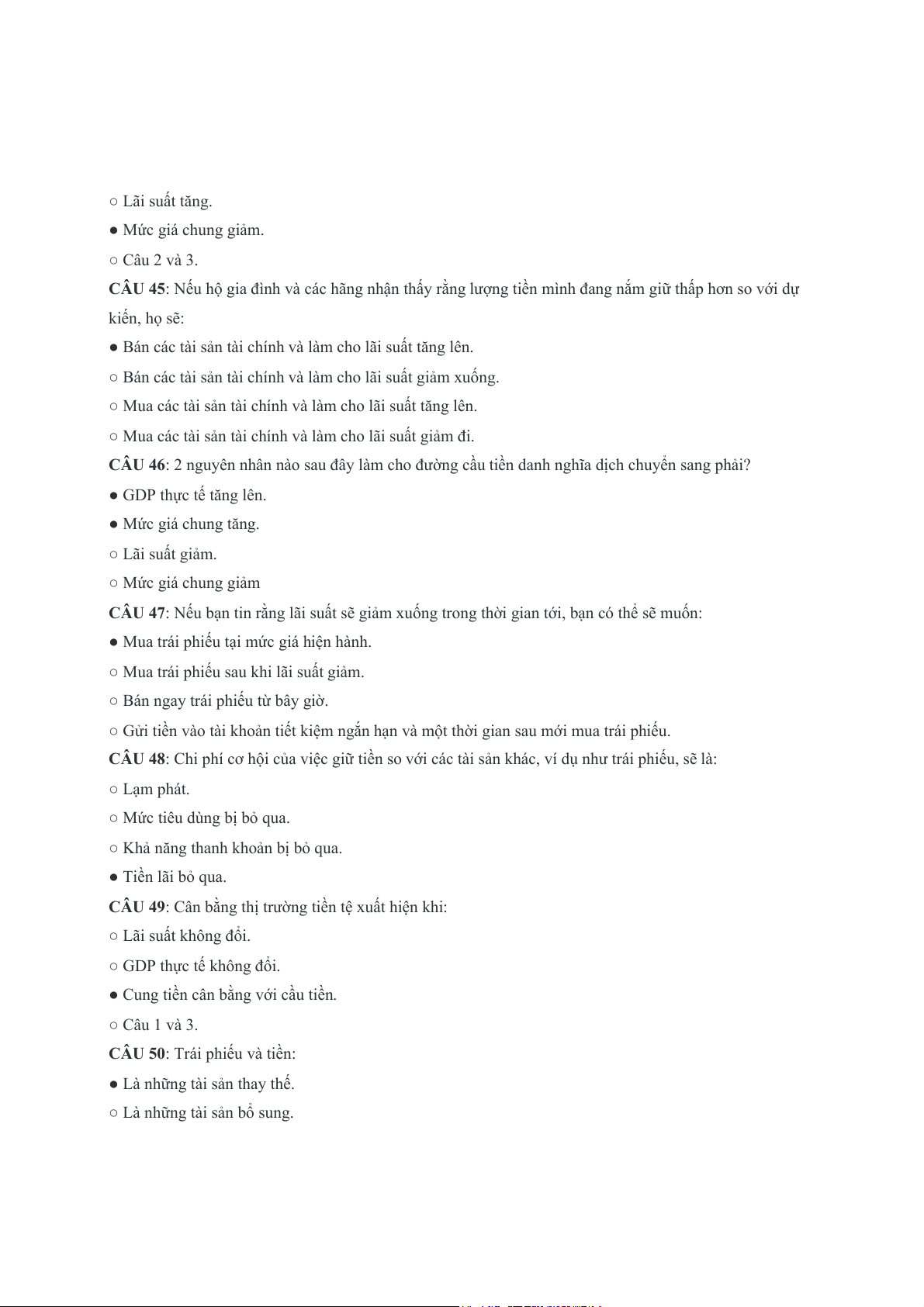● Cung tiền bằng với cầu tiền. ○ Câu 1 và 3 đúng.