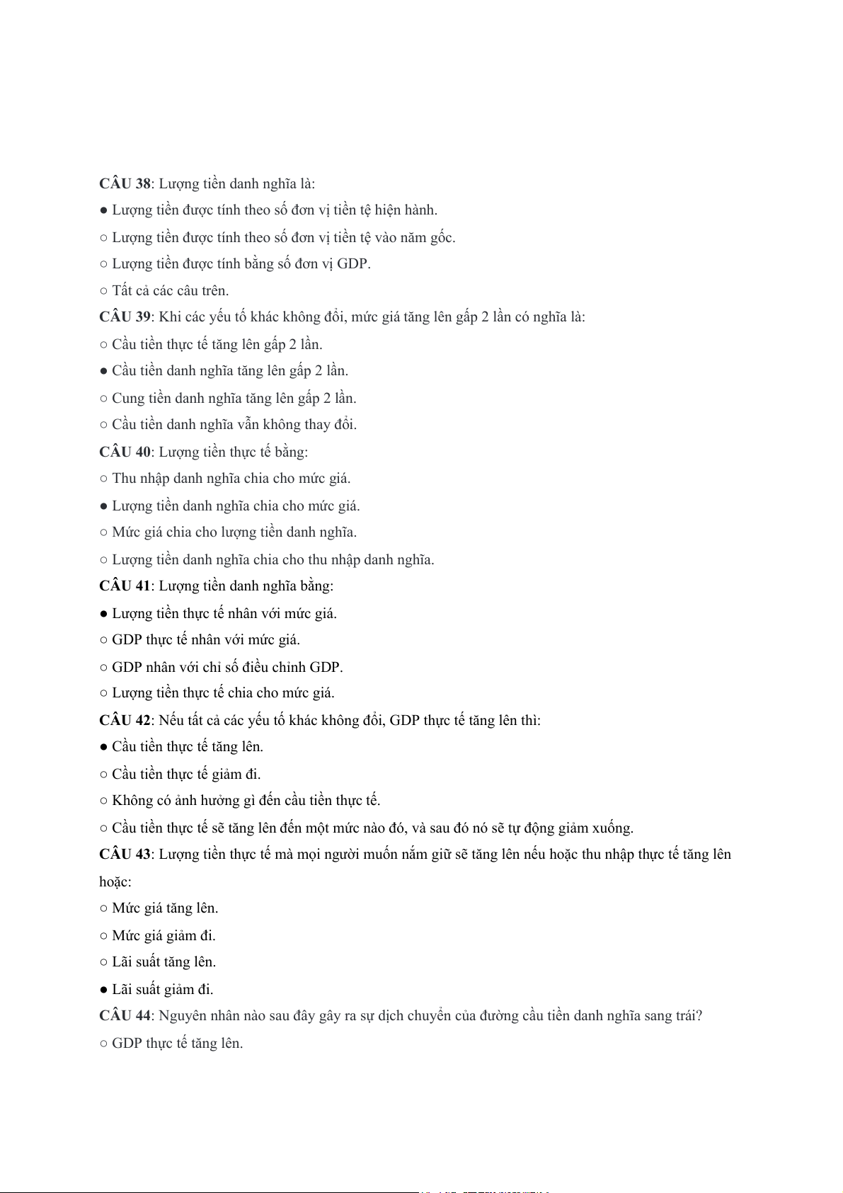 CÂU 20: Nếu GDP thực tế tăng lên, đường cầu tiền sẽ dịch chuyển sang: