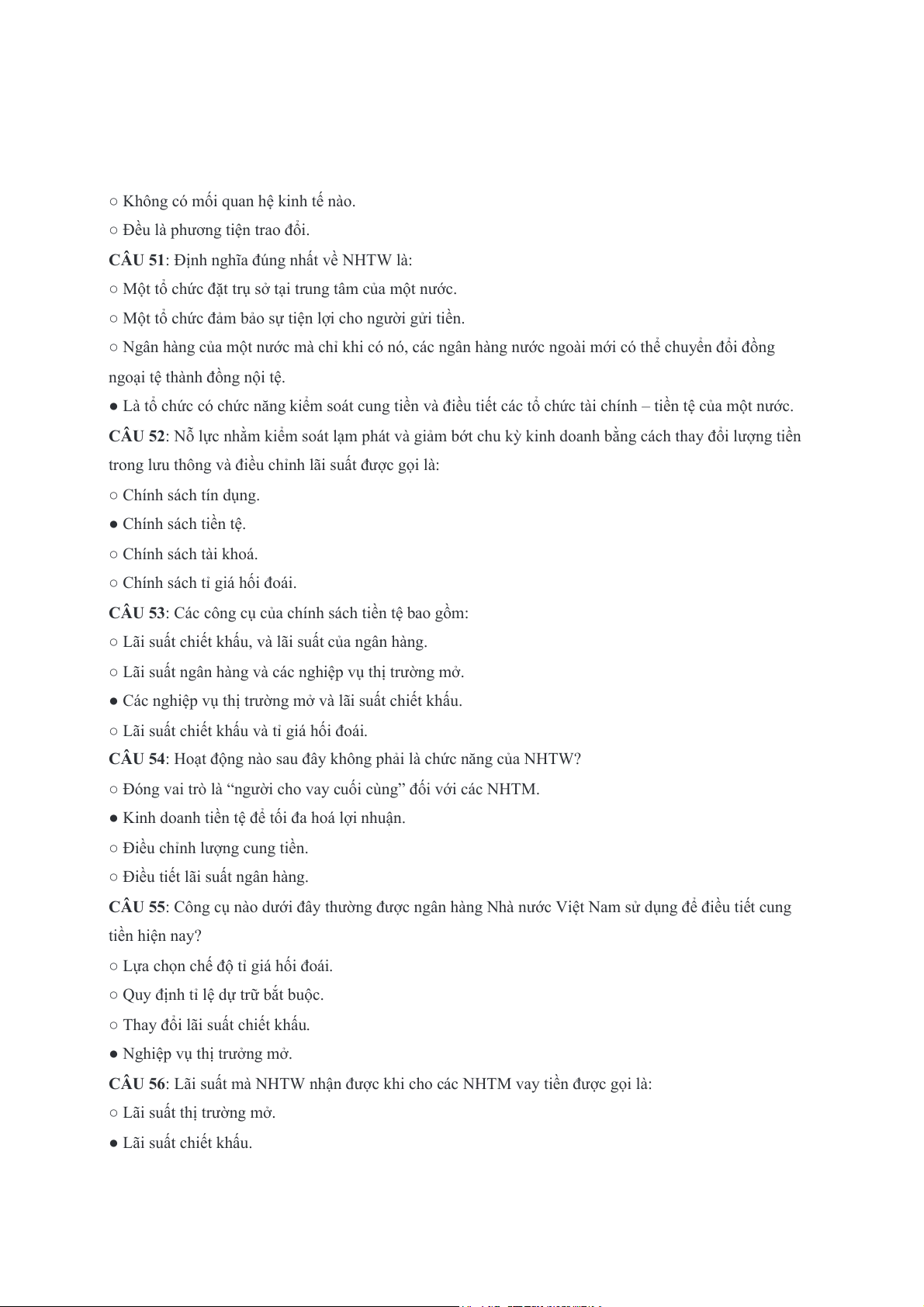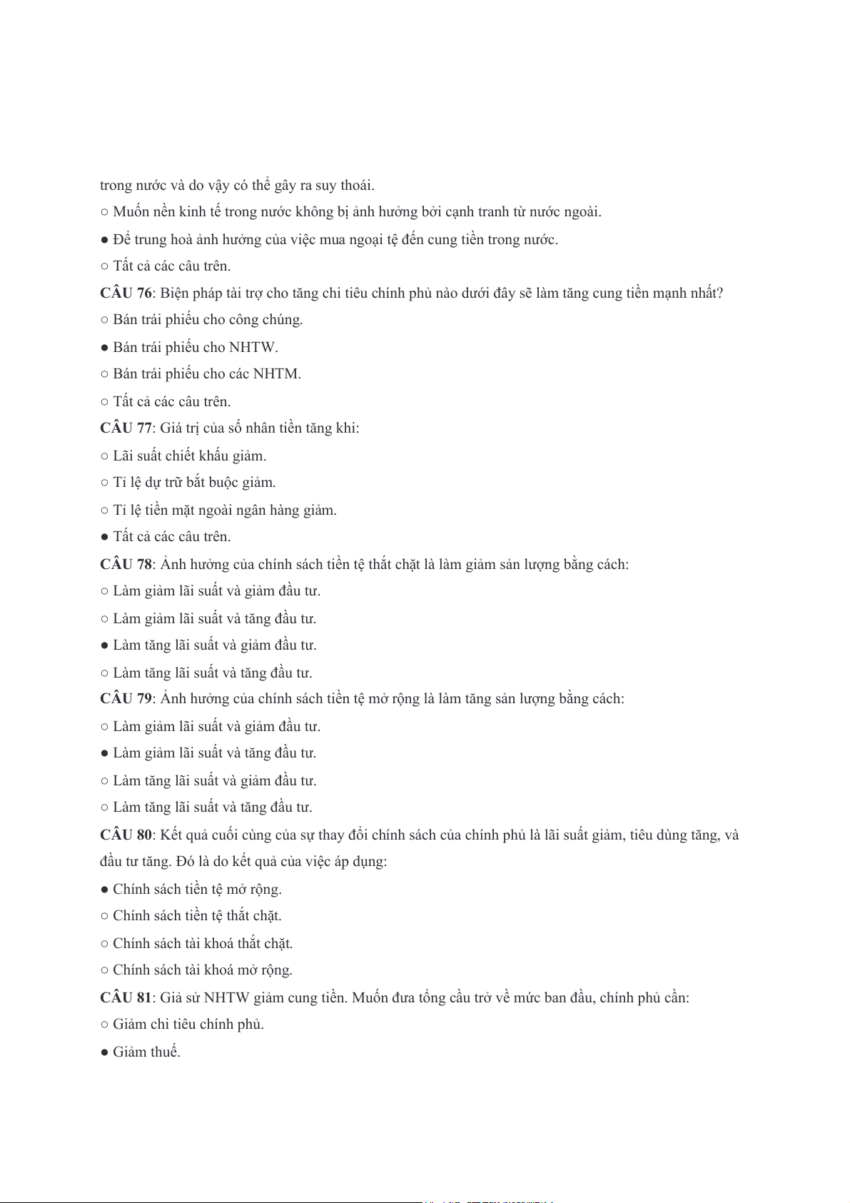 CÂU 9: Việc NHTW bán trái phiếu chính phủ trên thị trường mở sẽ làm: