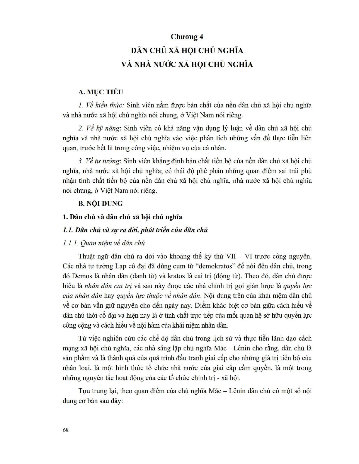 Chương 4: Dân Chủ Xã Hội Chủ Nghĩa và Nhà Nước Xã Hội Chủ Nghĩa Việt Nam | Môn Chủ nghĩa xã hội khoa học - Đại học Kinh Tế Quốc Dân
