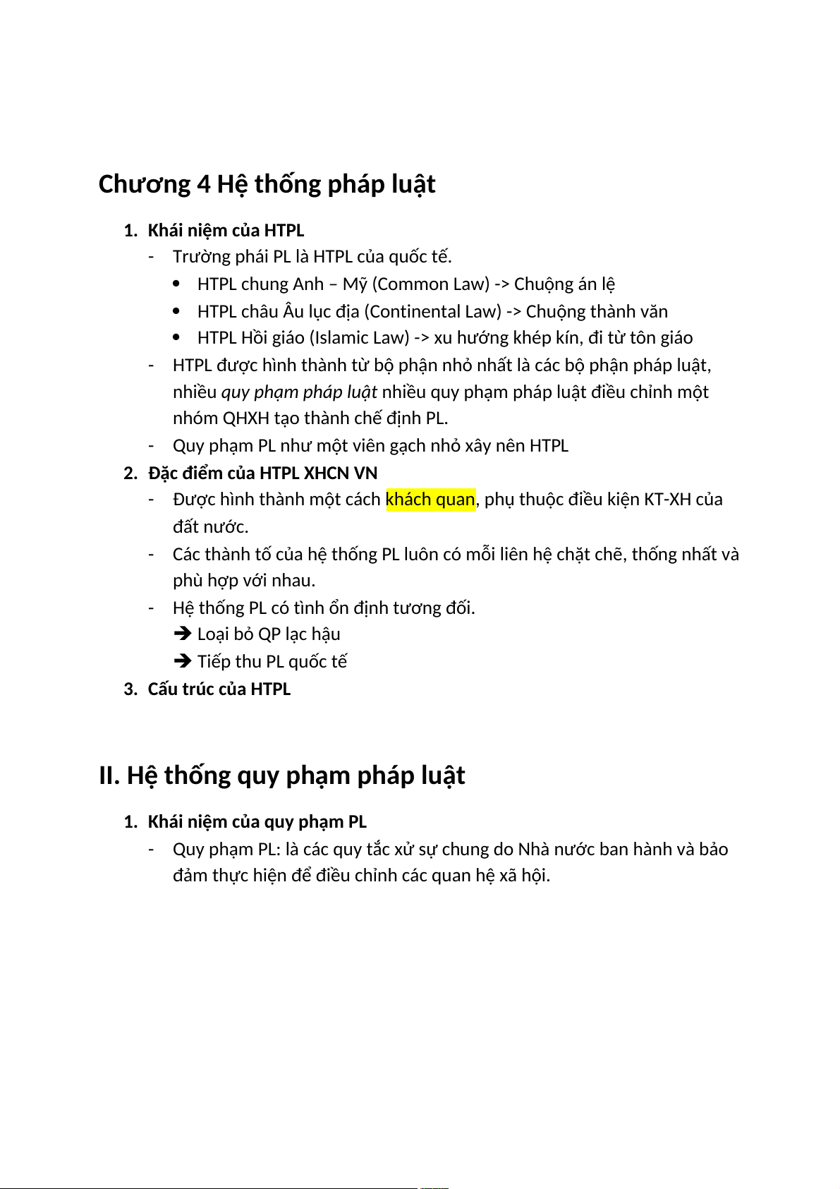 II. Hệ thống quy phạm pháp luật