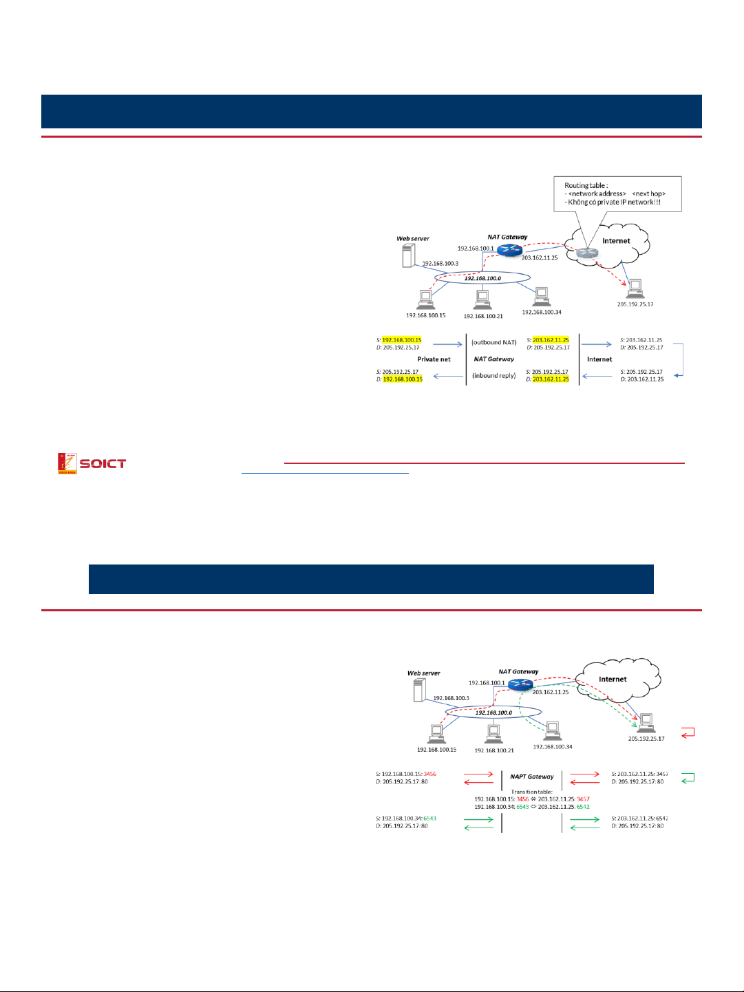 • NAT & NAPT hoạt động ở tầng 3&4 độc lập với tầng ứng dụng (cho phép mọi ứng dụng kết nối từ private network ra public Internet)