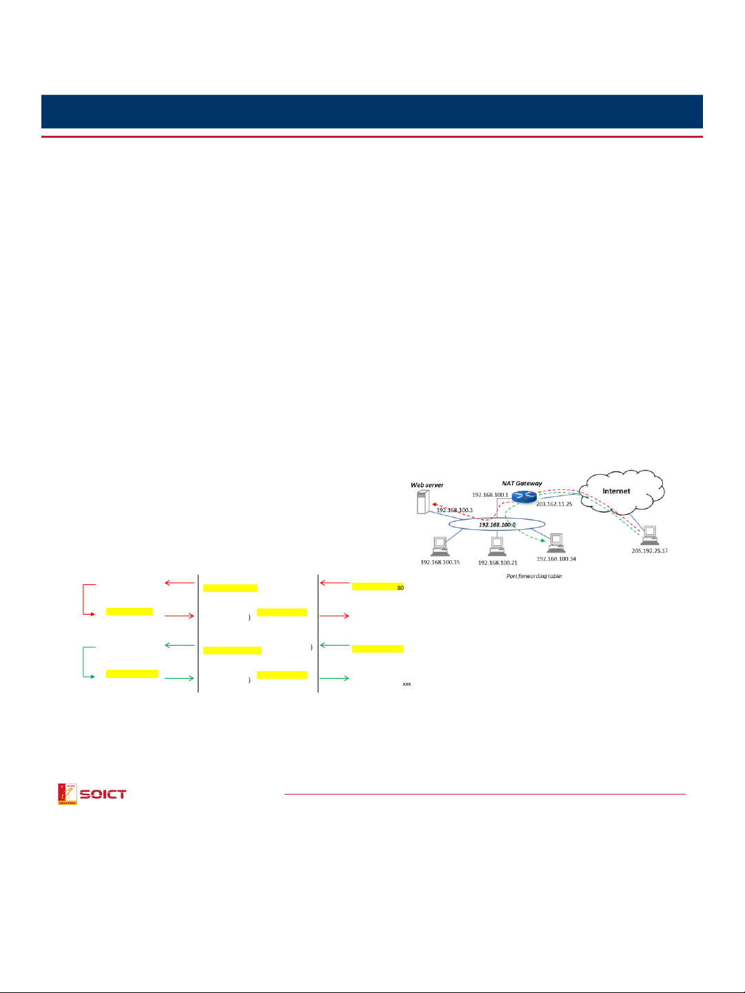 • Cơ chế chuyển đổi địa chỉ IP và Port nằm trong header của các gói tin trong suốt với ứng dụng (vốn chỉ