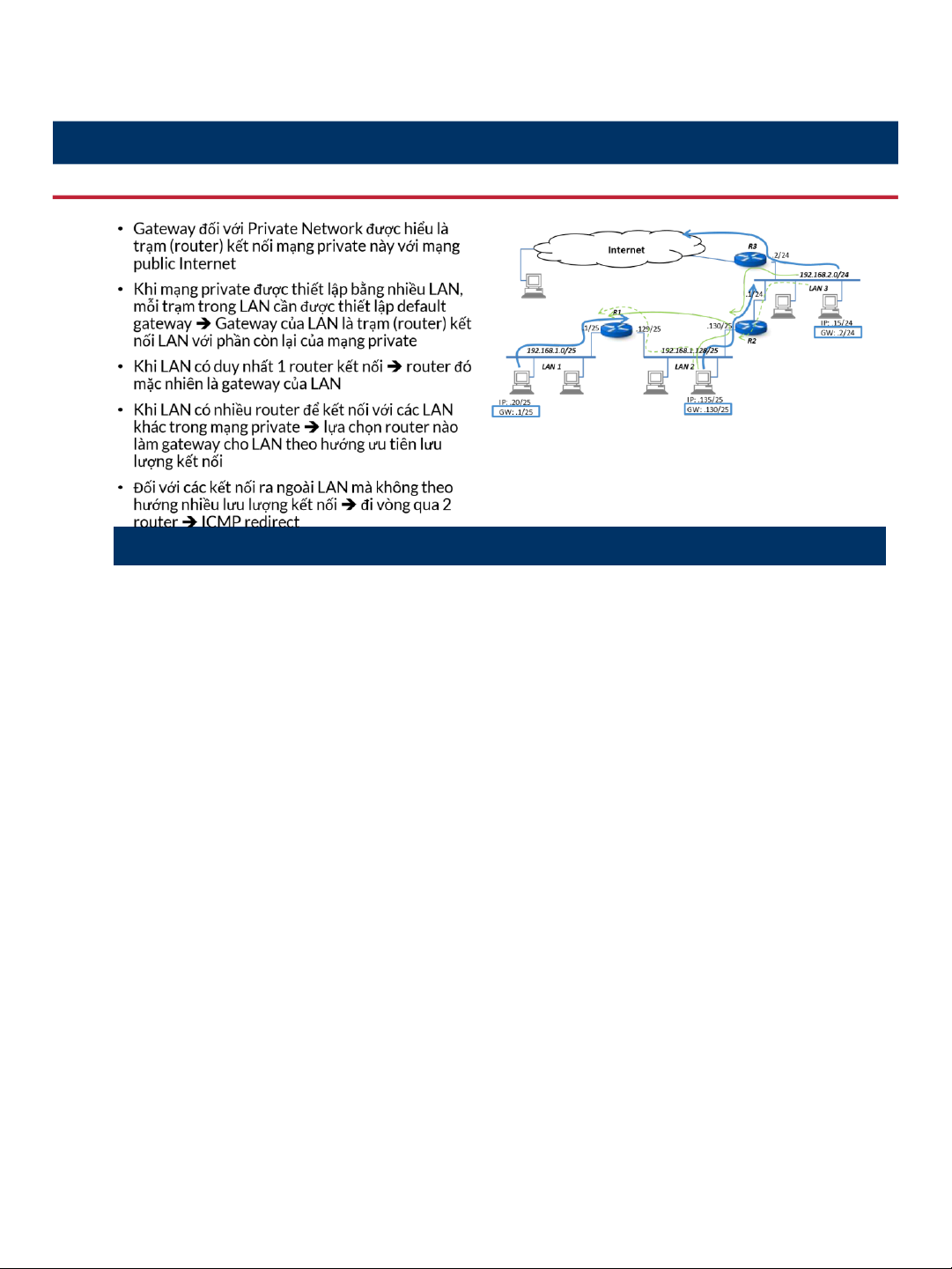 • Cấu hình default gateway cho mạng LAN có nhiều