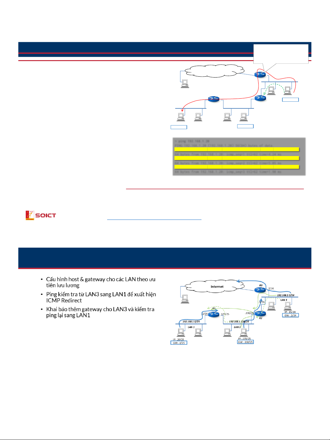 gateway phù hợp với trường “nexthop” trong gói From 192.168.2.2: 64 bytes from 192.168.1.20: icmp_seq=3 Redirect Host(New icmp_seq=3 ttl=62