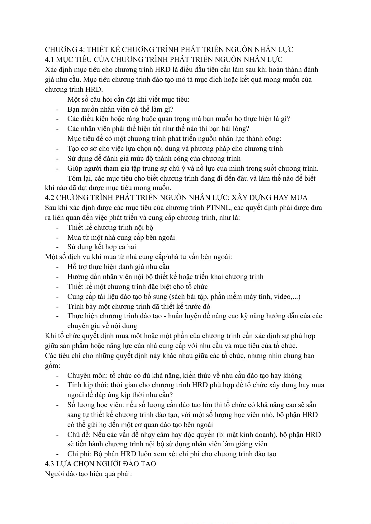 CHƯƠNG 4: THIẾT KẾ CHƯƠNG TRÌNH PHÁT TRIỂN NGUỒN NHÂN LỰC