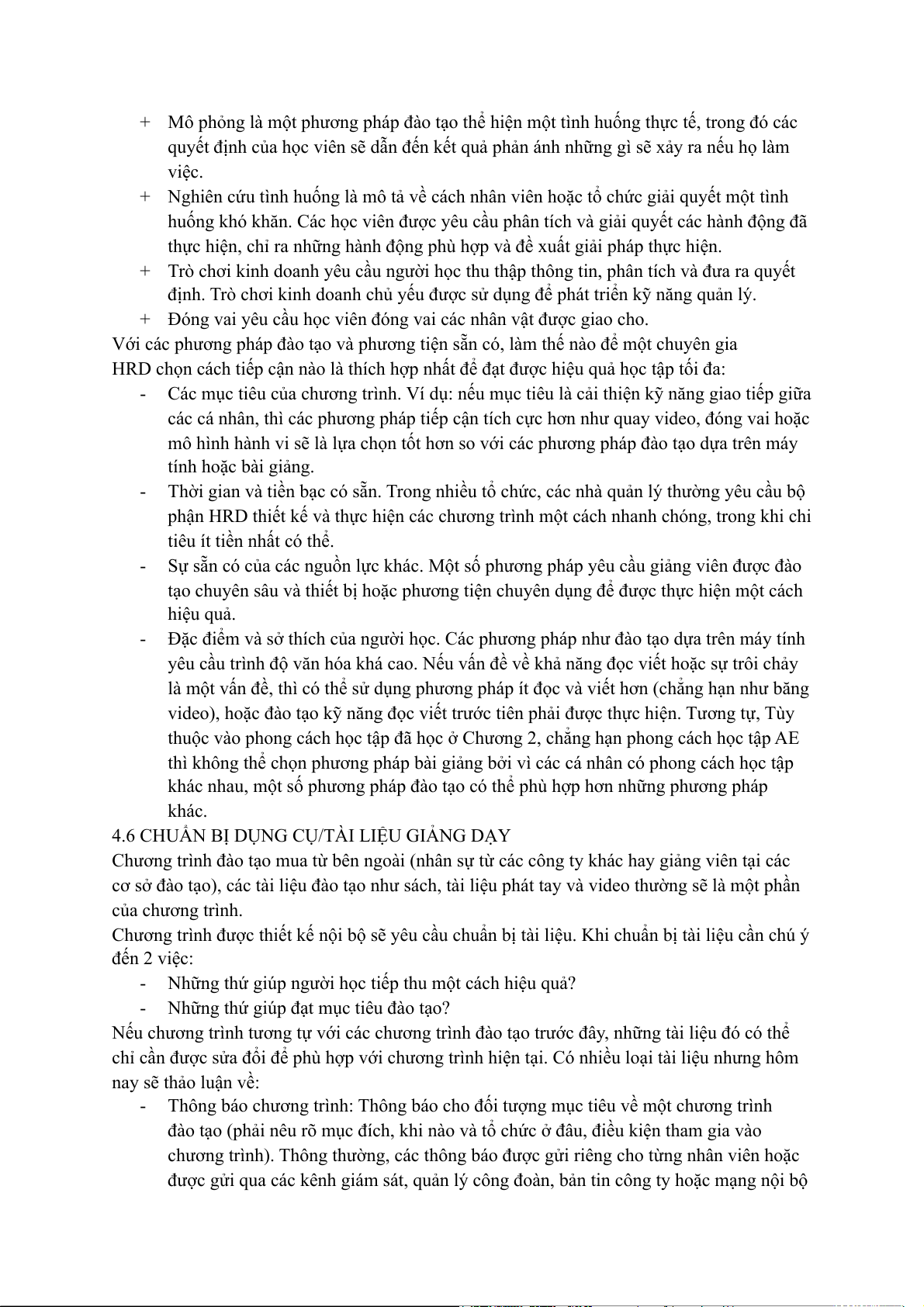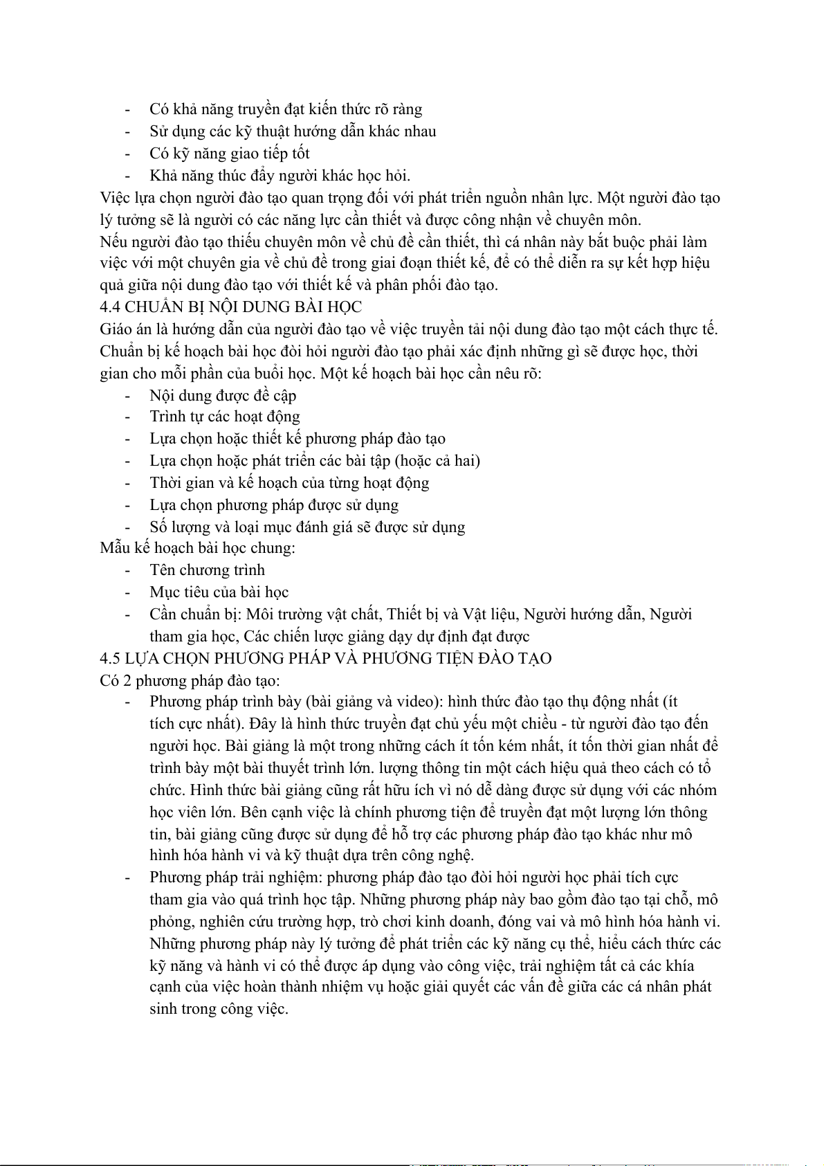 4.5 LỰA CHỌN PHƯƠNG PHÁP VÀ PHƯƠNG TIỆN ĐÀO TẠO